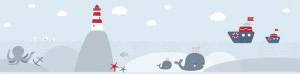 Borta 40376-1 Lovely Kids AS Creation Borta dla dzieci do przedszkola z motywem świata morskiego - niebieska, czerwona