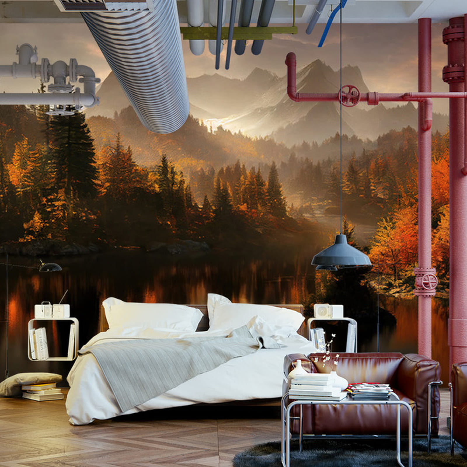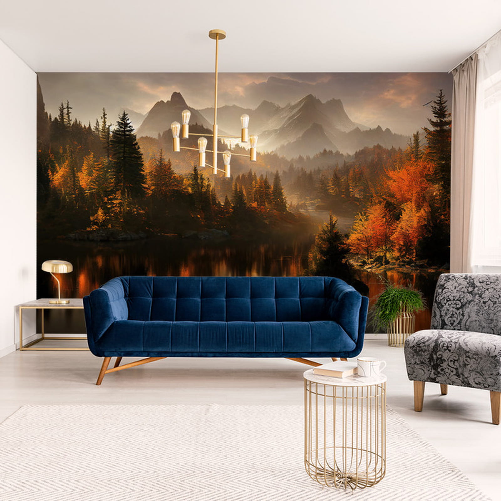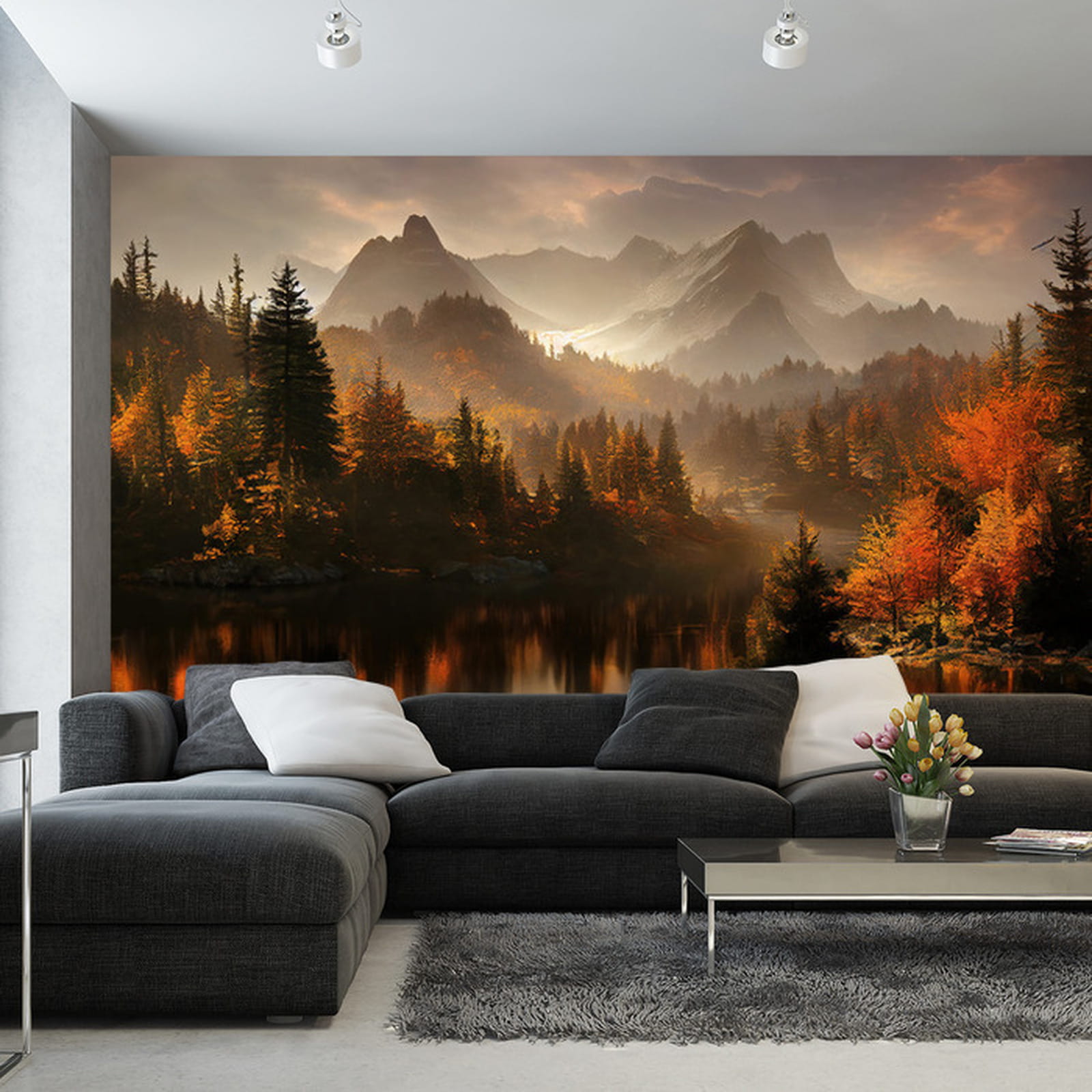 Fototapeta Ai Generated Image Of A Beautiful Landscape With Autumn Forest, A Lake And Hills