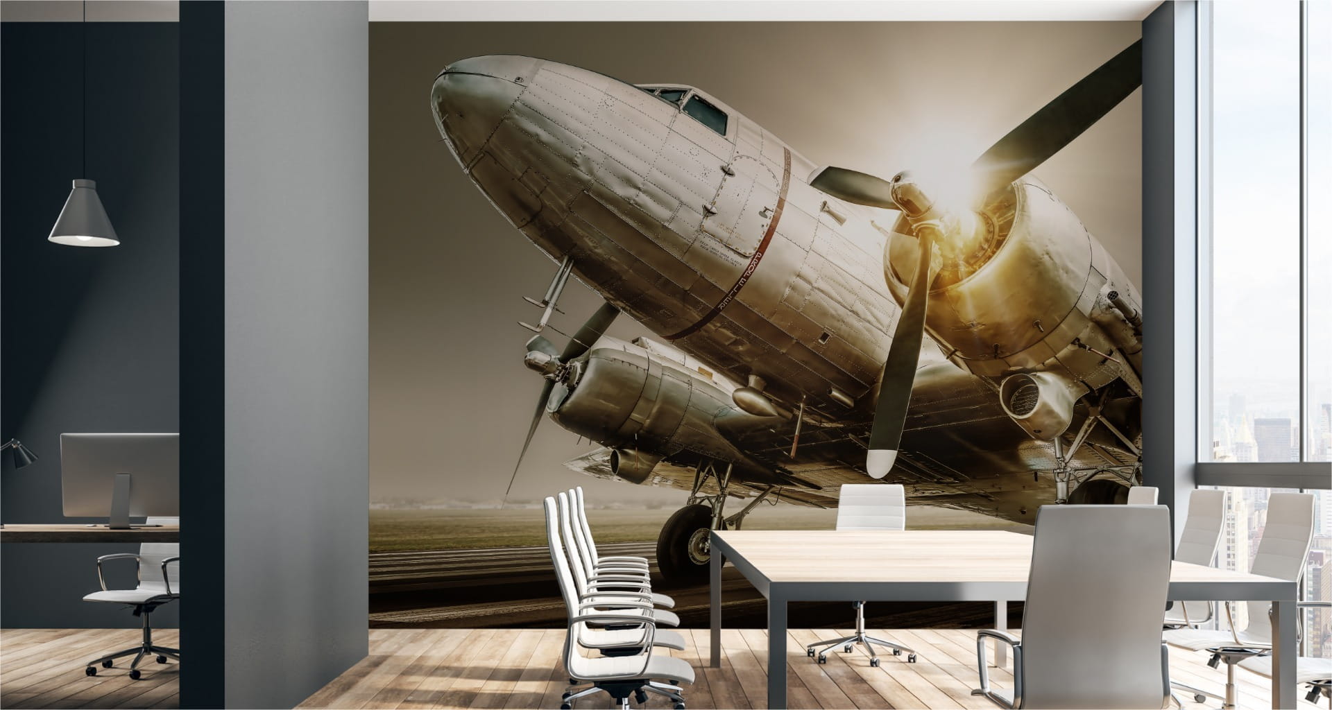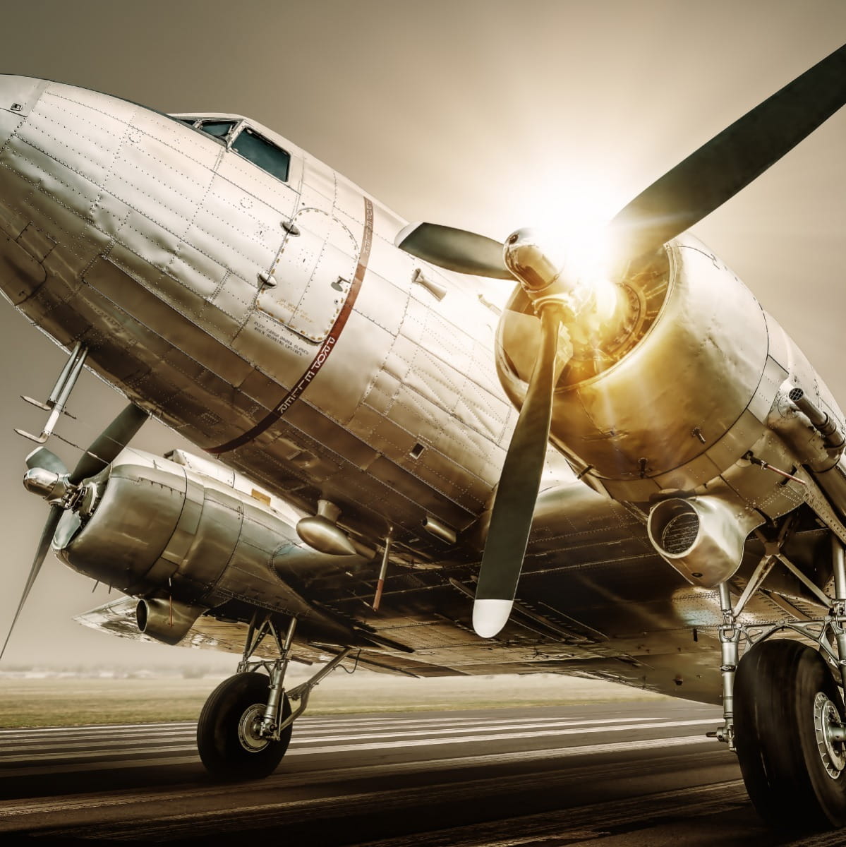 Fototapeta Zabytkowy Samolot O Zachodzie Słońca