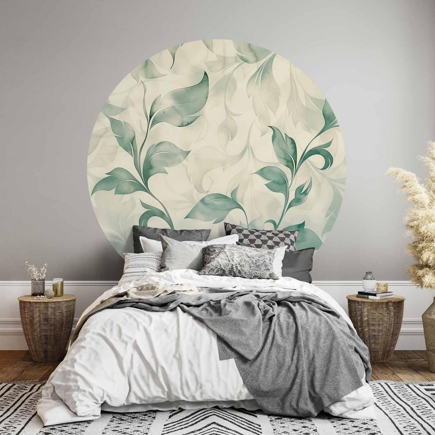 Fototapeta okrągła - Akwarelowe zielono-beżowe listki