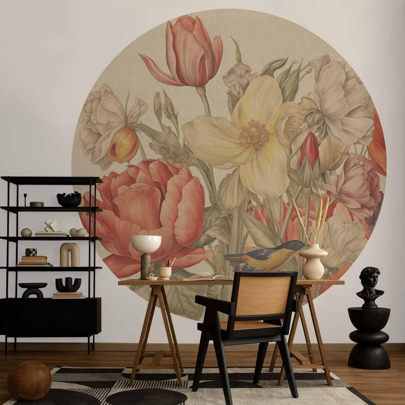 Odkryj niebanalną dekorację ścienną z naszą fototapetą w kształcie koła, która stanowi idealne połączenie estetyki i funkcjonalności. Uniwersalny kształt koła doskonale komponuje się zarówno z nowoczesnymi, jak i klasycznymi aranżacjami wnętrz. Wytrzymałe i wygodne w montażu fototapety okrągłe pomogą w prosty sposób stworzyć oryginalną przestrzeń w domu, biurze czy lokalu gastronomicznym. „Fototapeta okrągła - Bukiet kwiatów na kremowym tle” jest dostępna w różnych rozmiarach, co pozwala na idealne dopasowanie do dekorowanej powierzchni. Inwestycja w okrągłą fototapetę to nie tylko wizualne wzbogacenie wnętrza, ale także praktyczne rozwiązanie wspierające komfort psychiczny. Estetyczne otoczenie wpływa na samopoczucie i produktywność, a starannie dobrane elementy dekoracyjne mogą znacząco poprawić nastrój lub pobudzić kreatywność.