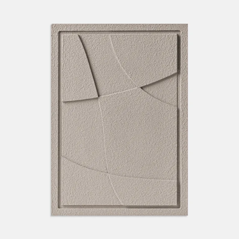 Wykonany z solidnej płyty MDF oraz pokryty naturalnym tynkiem glinianym, obraz charakteryzuje się nie tylko trwałością, ale również przyjemną w dotyku powierzchnią. Jego chropowata faktura w połączeniu z grą światłocienia tworzy dynamiczny efekt, który zmienia się w zależności od oświetlenia, nadając przestrzeni głębi i charakteru.