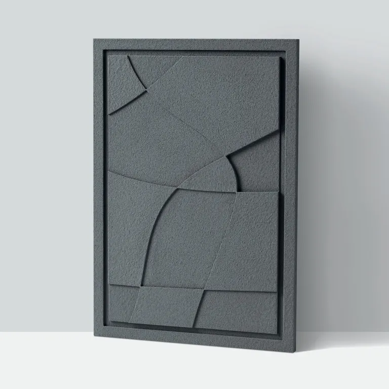 Wykonany z wysokiej jakości płyty MDF oraz pokryty naturalnym tynkiem glinianym, ten panel wyróżnia się trwałością oraz łatwością w utrzymaniu. Dzięki temu obraz zachowuje swój elegancki wygląd na długie lata. Jego trójwymiarowa struktura w kolorze Smokey Grey nadaje wnętrzu głębię i wyjątkowość, zmieniając swój wygląd pod wpływem światła, co sprawia, że każdy kąt pomieszczenia staje się interesujący.