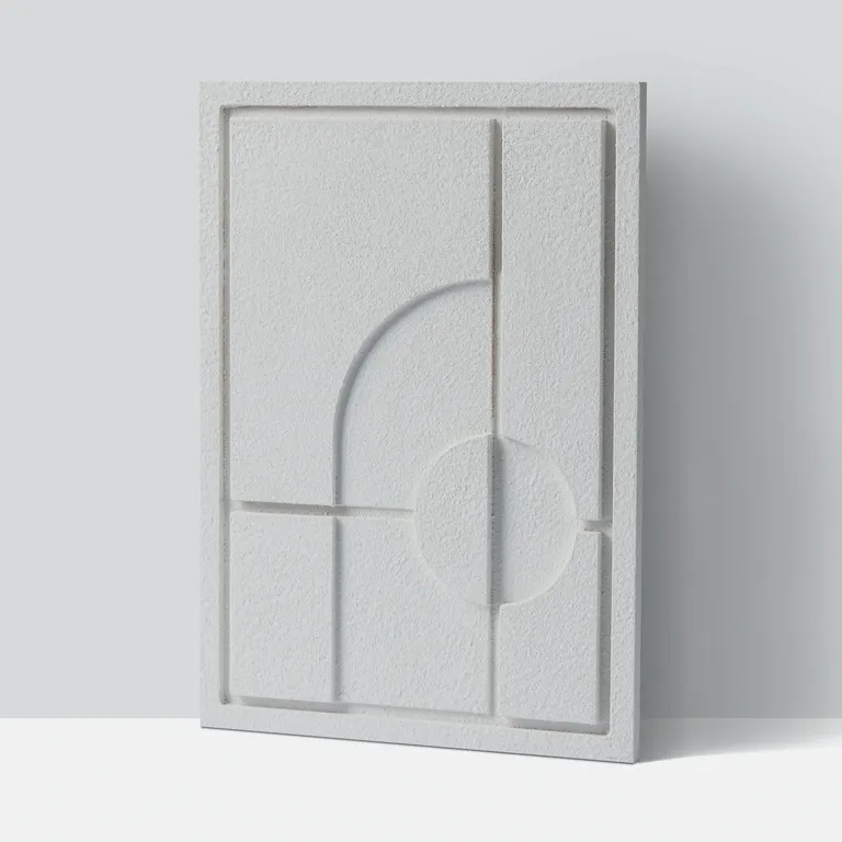 Obraz 3D relief GEOMETRIC I w odcieniu Milky Grey od Murso to wyjątkowy element dekoracyjny, który z pewnością przyciągnie uwagę w każdym wnętrzu. Jego trójwymiarowa struktura sprawia, że staje się on nie tylko ozdobą, ale również dynamicznym akcentem, który ożywia przestrzeń. W grze światła i cienia ta płaskorzeźba ukazuje różnorodne perspektywy, oferując nowe doznania wizualne za każdym razem, gdy na nią spojrzysz.