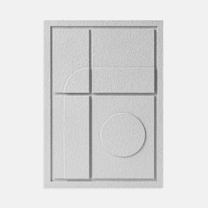 Odkryj nowoczesność i elegancję dzięki dekoracji ściennej – obrazowi 3D relief GEOMETRIC III Bianco Murso. Ten trójwymiarowy panel artystyczny wprowadza do Twojego wnętrza niepowtarzalny styl, a jego precyzyjnie wykonany geometryczny wzór, składający się z prostokątów, linii oraz okręgów, zmienia się w zależności od kąta padania światła, co nadaje pomieszczeniu niezwykłej głębi i dynamiki.