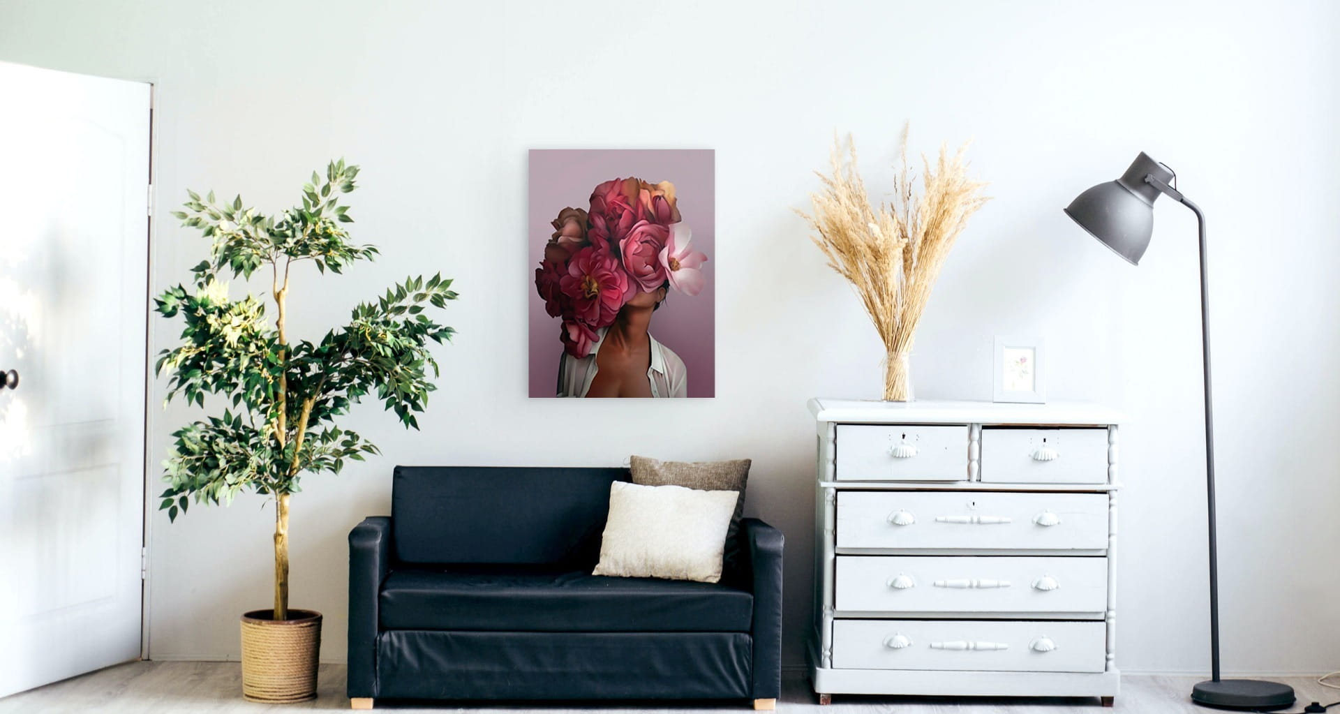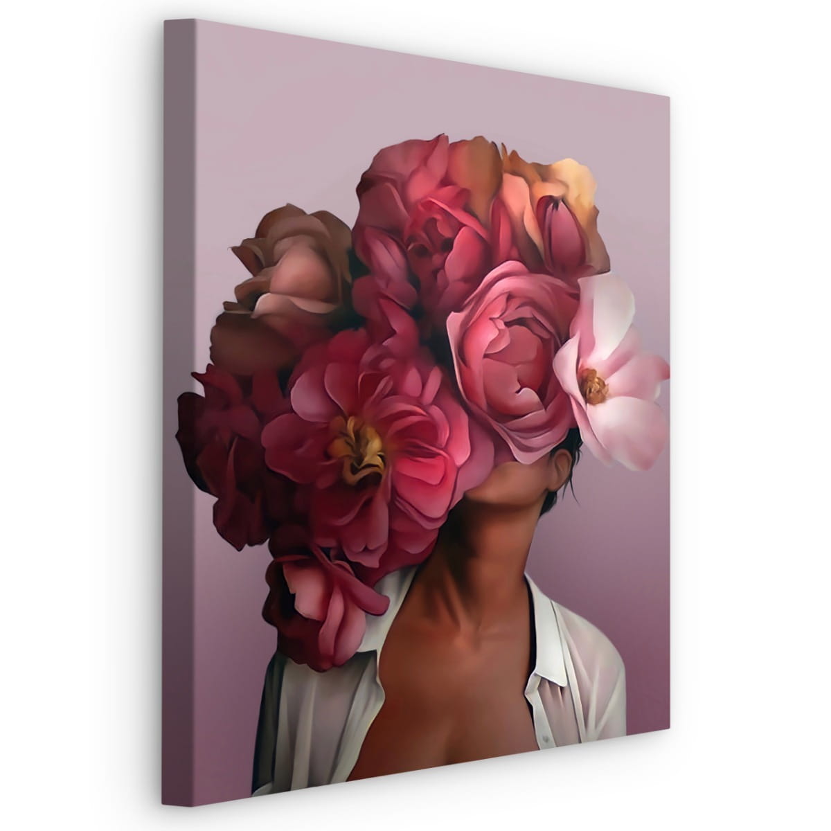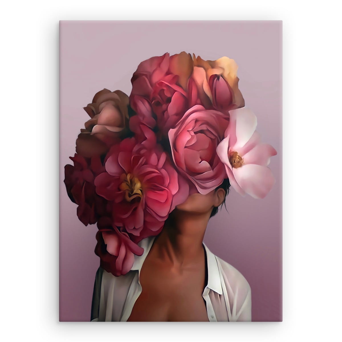 Obraz Na Płótnie Artystyczny Portret Kobiety Z Różowymi Kwiatami