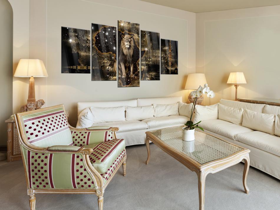 Obraz na szkle akrylowym "Obraz na szkle akrylowym - Złoty lew" to świetny pomysł na wystrój nowoczesnych wnętrz. Doskonale pasuje do oryginalnych rozwiązań i stanowi interesującą alternatywę dla tradycyjnych dekoracji ściennych np. jako panele szklane czy szkło dekoracyjne do kuchni. Druk na szkle akrylowym przyciąga wzrok dzięki efektowi głębi i pięknie wygląda w pokojach reprezentacyjnych. Dzięki zastosowaniu nowoczesnych technologii druku i wysokiej jakości barwników, charakteryzuje się pięknym połyskiem. Obrazy na szkle akrylowym są lekkie, łatwe w czyszczeniu i odporne na działanie wilgoci, dzięki czemu świetnie sprawdzą się zarówno w salonie, sypialni, łazience, a nawet na tarasie. Szkło akrylowe z grafiką dzięki przepuszczalności światła zyskuje niesamowity efekt 3d.