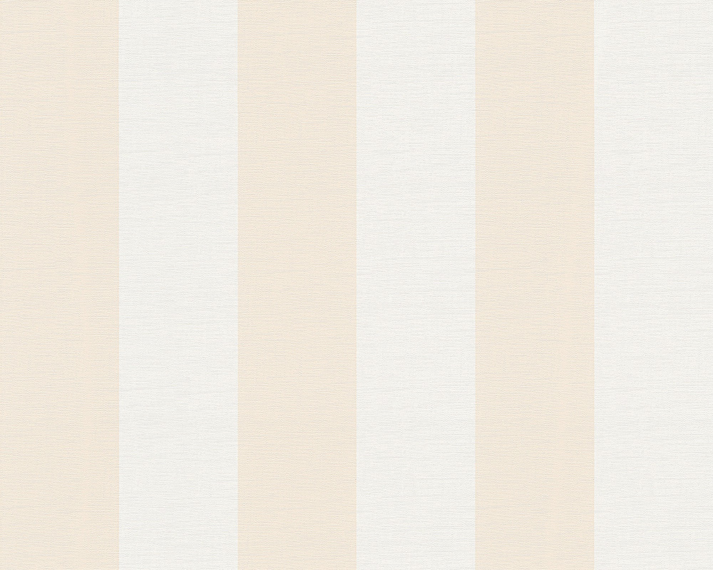 Tapeta AS z kolekcji Liberte w biało - brzoskwiniowe pasy. Nadaje się do salonu, sypialni i kuchni. Szerokość pasów to ok. 9 cm.