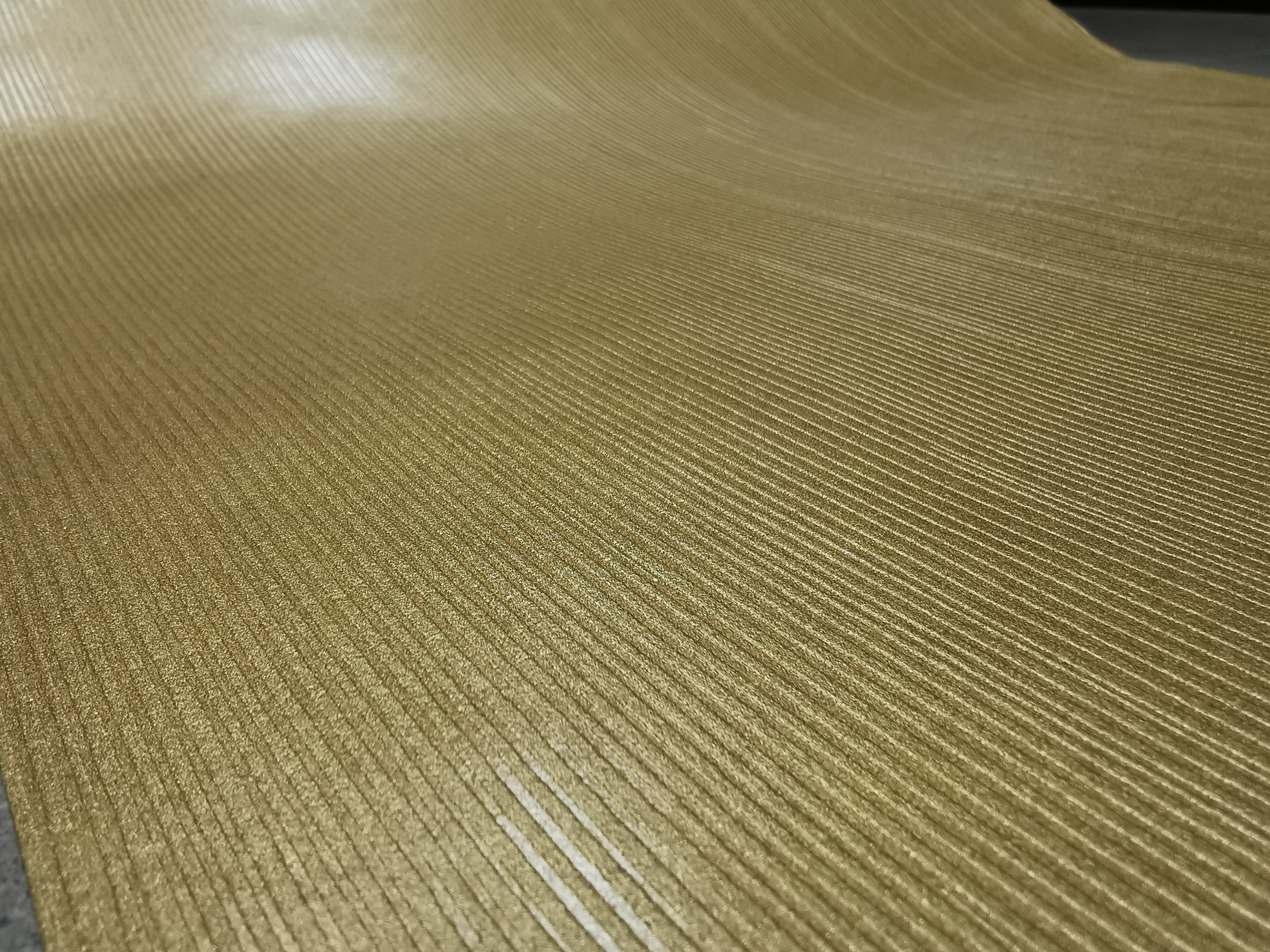 Opis: Tapeta 2548-63 zmywalna na flizelinie o oliwkowo złotym kolorze w delikatne prążki.