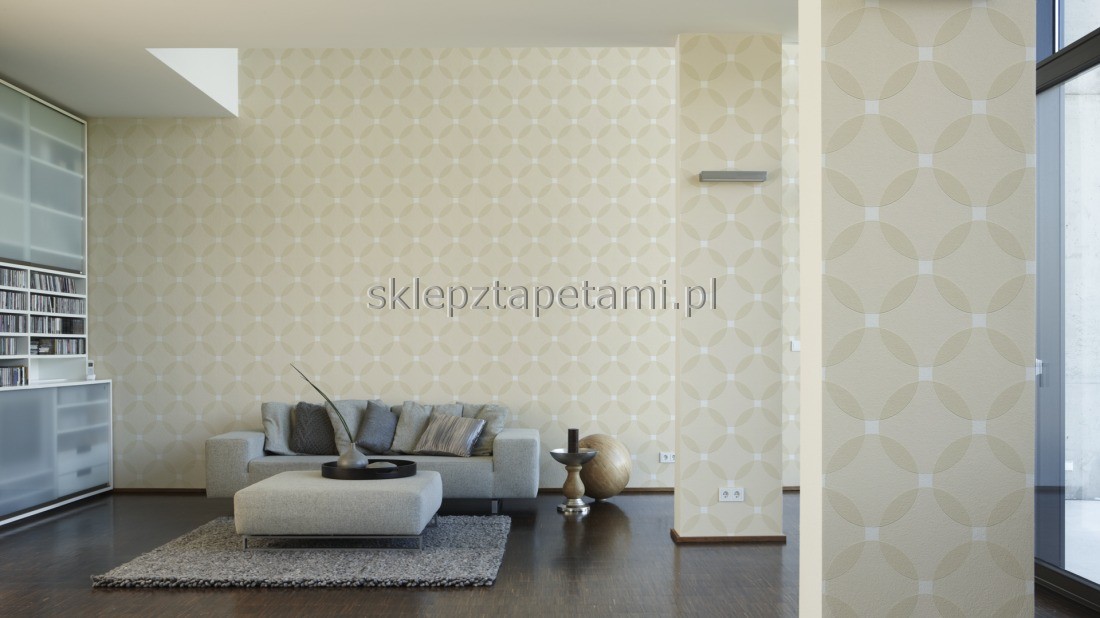 Tapeta ścienna zmywalna na flizelinie, geometryczny wzór, beżowe koła