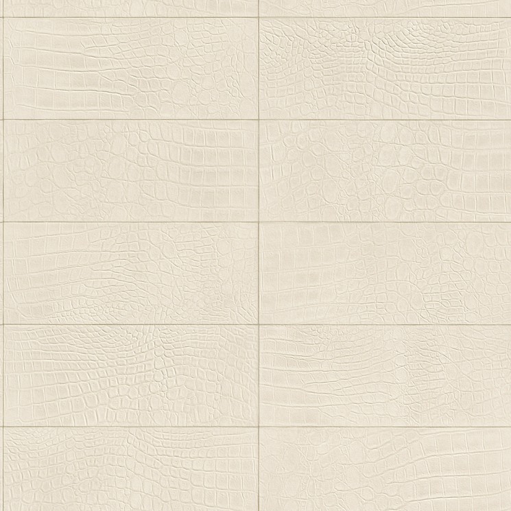 Tapeta ścienna Rasch z kolekcji COSMOPOLITAN, winylowa na flizelinie. Imituje kremową skórę zwierzęcą, która została podzielona na prostokątne fragmenty.