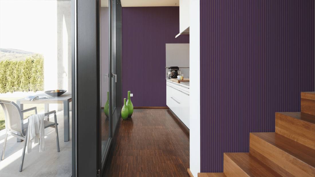 TAPETA ŚCIENNA AS w paski złote na fioletowym tle Outlet ostatnia rolka