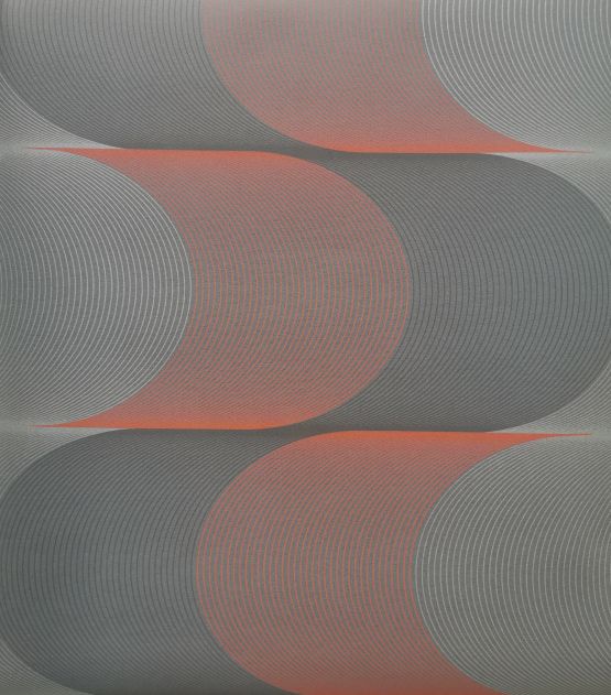 Tapeta producenta Marburg z kolekcji THE WALL. Wzór geometryczny złożony z drobnych pasków w kolorach szarym i pomarańczowym z efektem 3D.