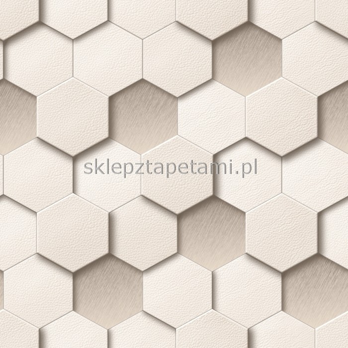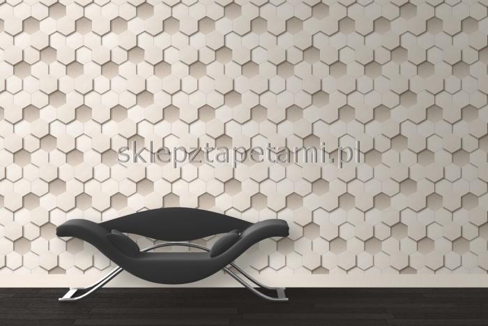 Tapeta ścienna na flizelinie, przypominające łatki piłki nożnej elementy geometryczne z efektem 3D.