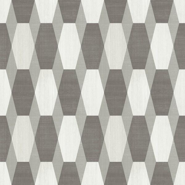 Tapeta ścienna Ugepa z kolekcji PRISME 3D. Geometryczny wzór przedstawiający symetryczne sześciokąty w kolorze szarym i białym.
