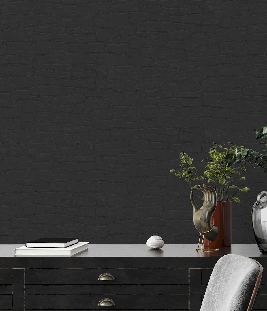 Tapeta 13951-1 AS AS Creation Kamienna tapeta z teksturowanym wzorem i efektem 3D - czarna