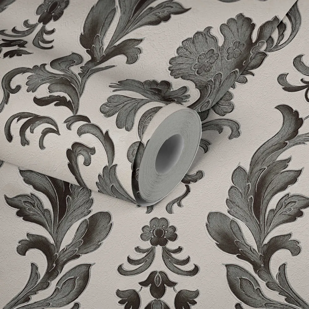 Tapeta 30190-1 Concerto 3 AS Creation ze szczegółowymi ornamentami w kwiecistym stylu - czarny, biały