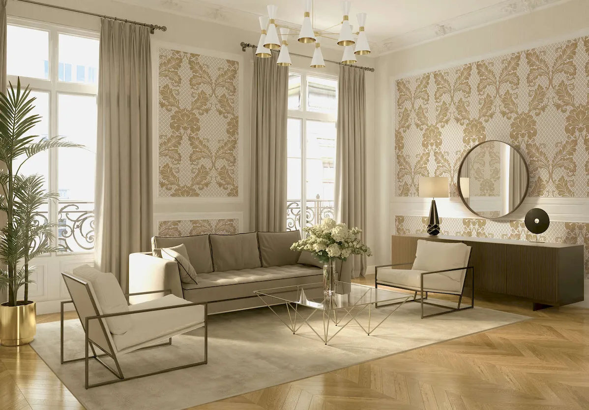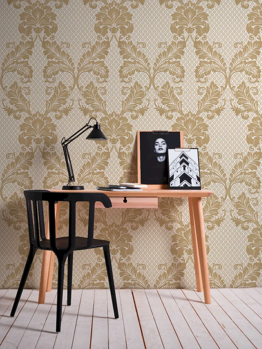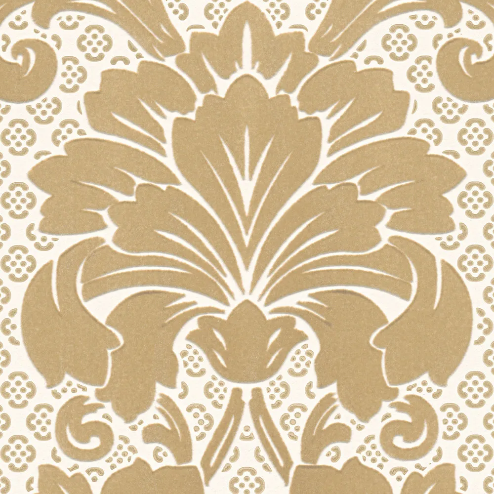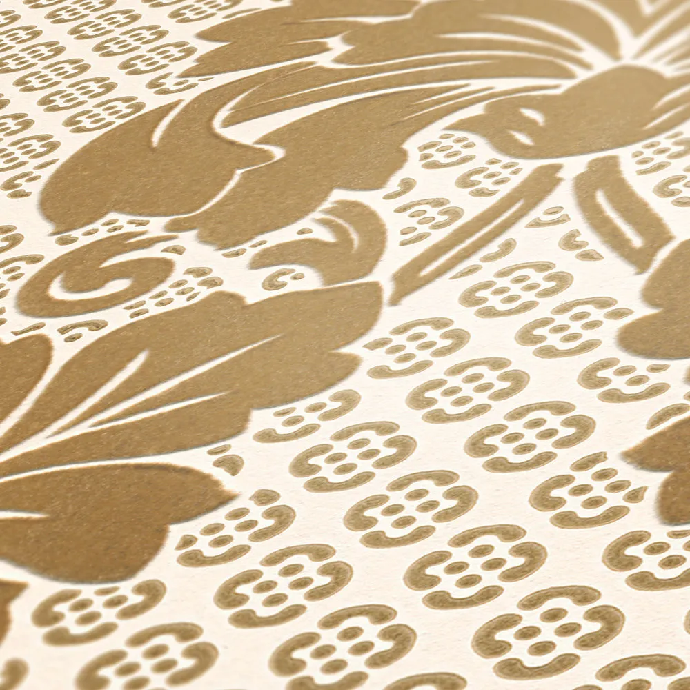 Tapeta 30544-2 Luxury Wallpaper AS Creation wzorzysta motyw ornamentu z dużym motywem kwiatowym - złoto, krem