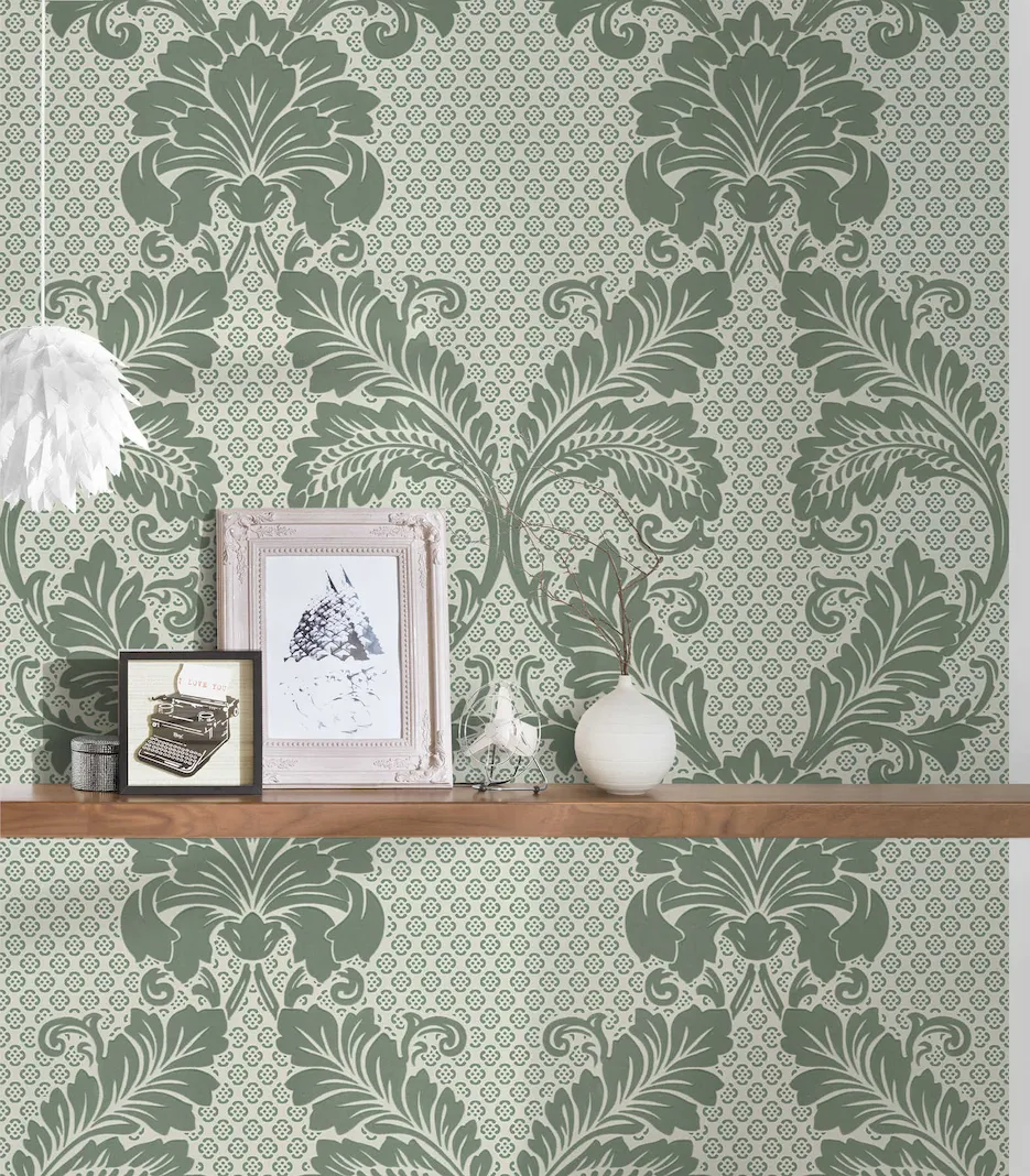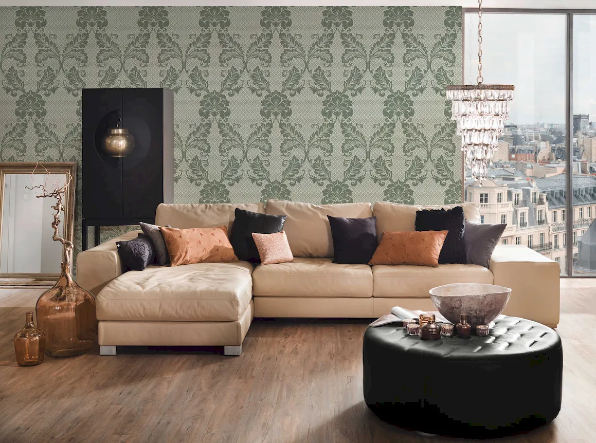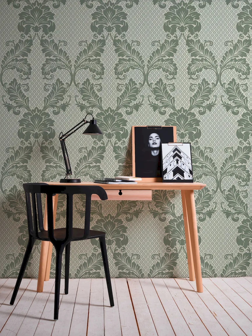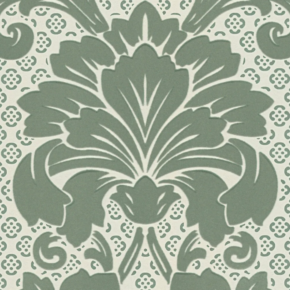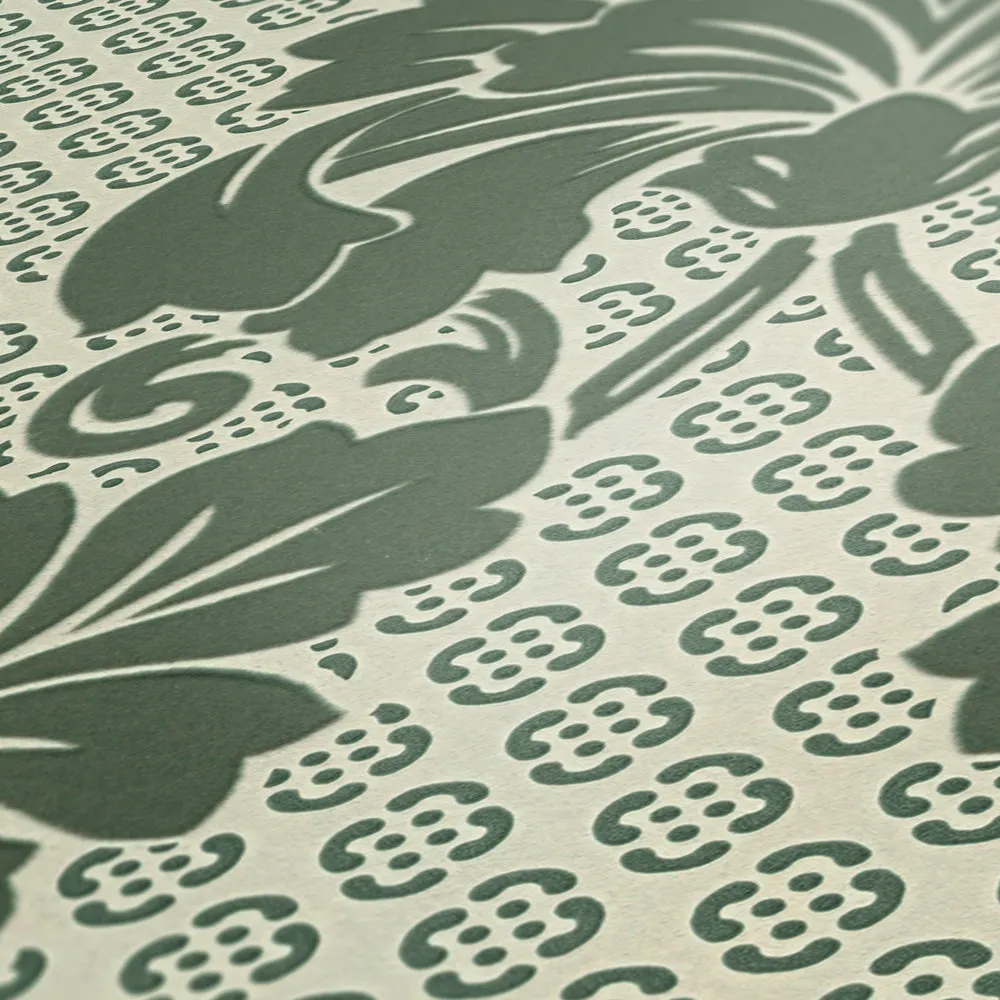 Tapeta 30544-3 Luxury Wallpaper AS Creation wzorzysta motyw ornamentu z dużym motywem kwiatowym - zielonym, niebieskim
