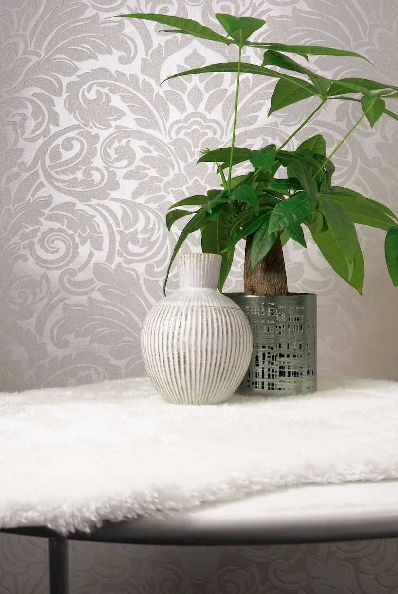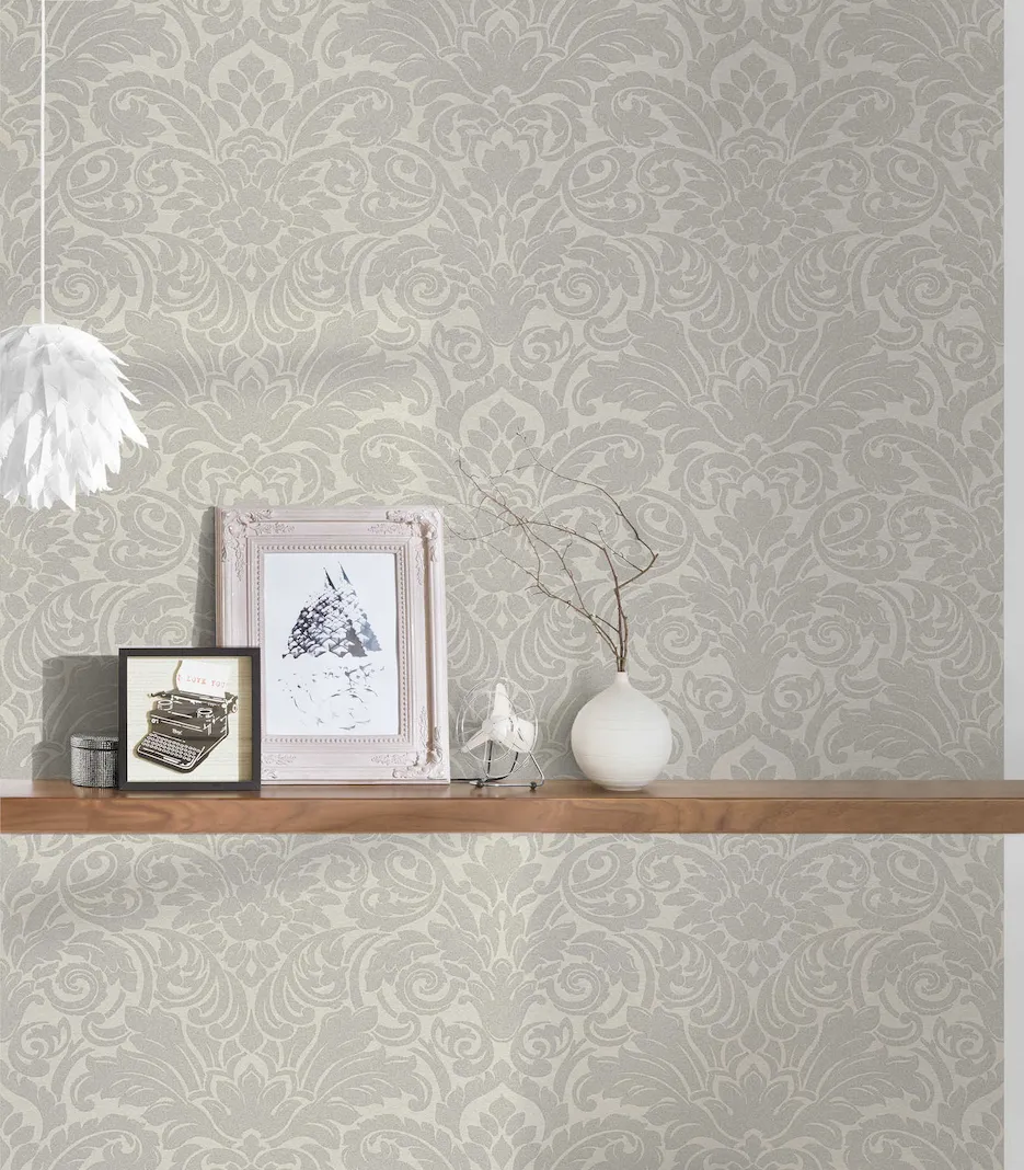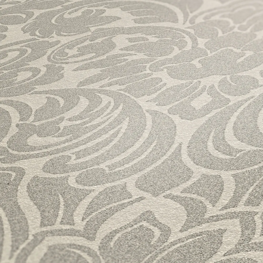 Tapeta 30545-1 Luxury Wallpaper AS Creation ornament z metalicznym efektem i motywem kwiatowym - srebrna, kremowa