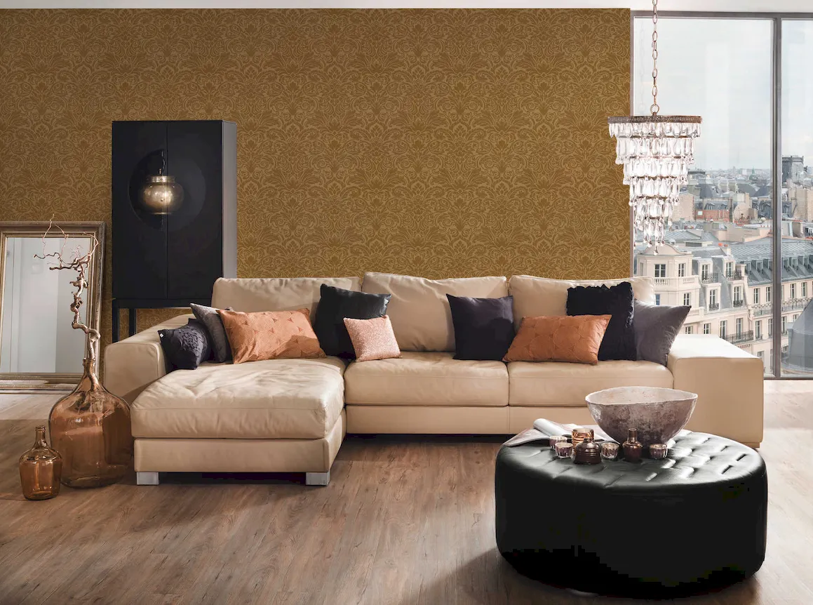 Tapeta 30545-4 Luxury Wallpaper AS Creation ornament z efektem metalicznym i kwiatowy wzór – złoto