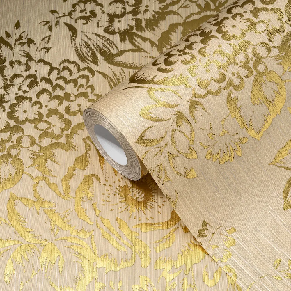Tapeta 30657-3 AP Metallic Silk AS Creation strukturalna złoty kwiatowy wzór - złoto, krem
