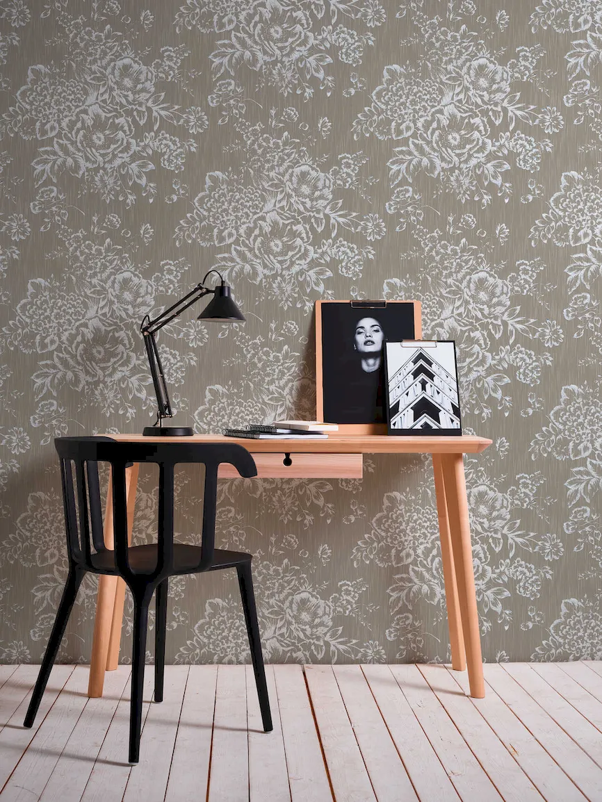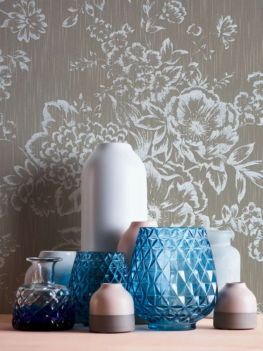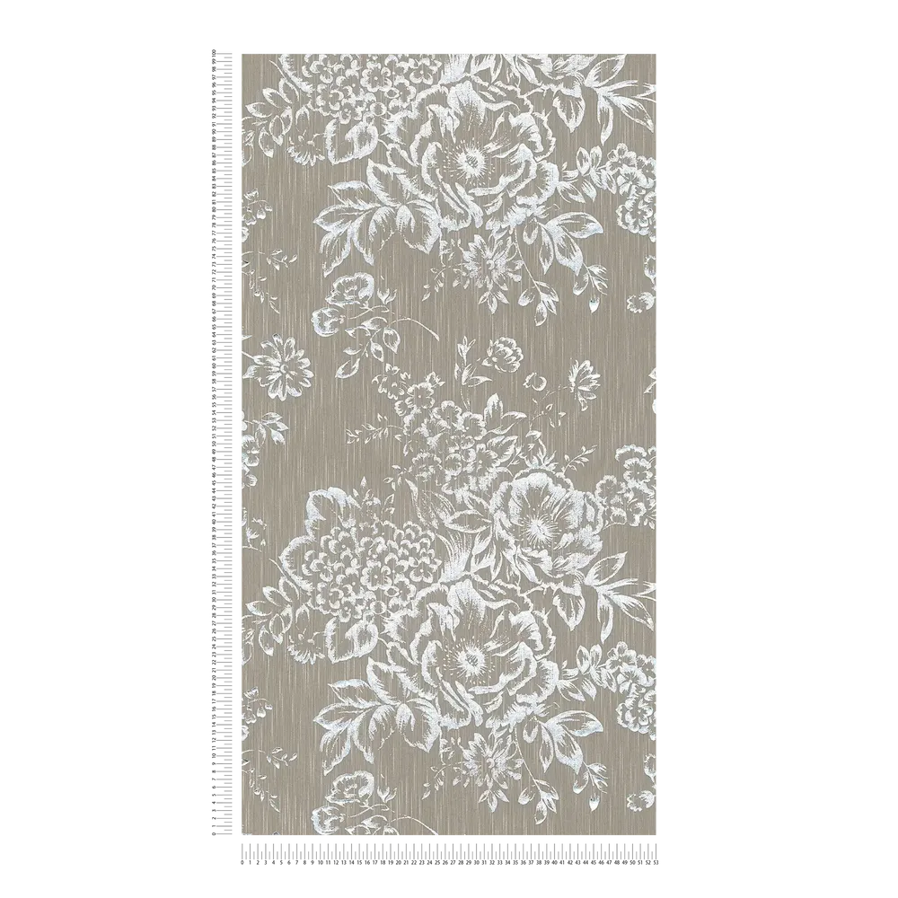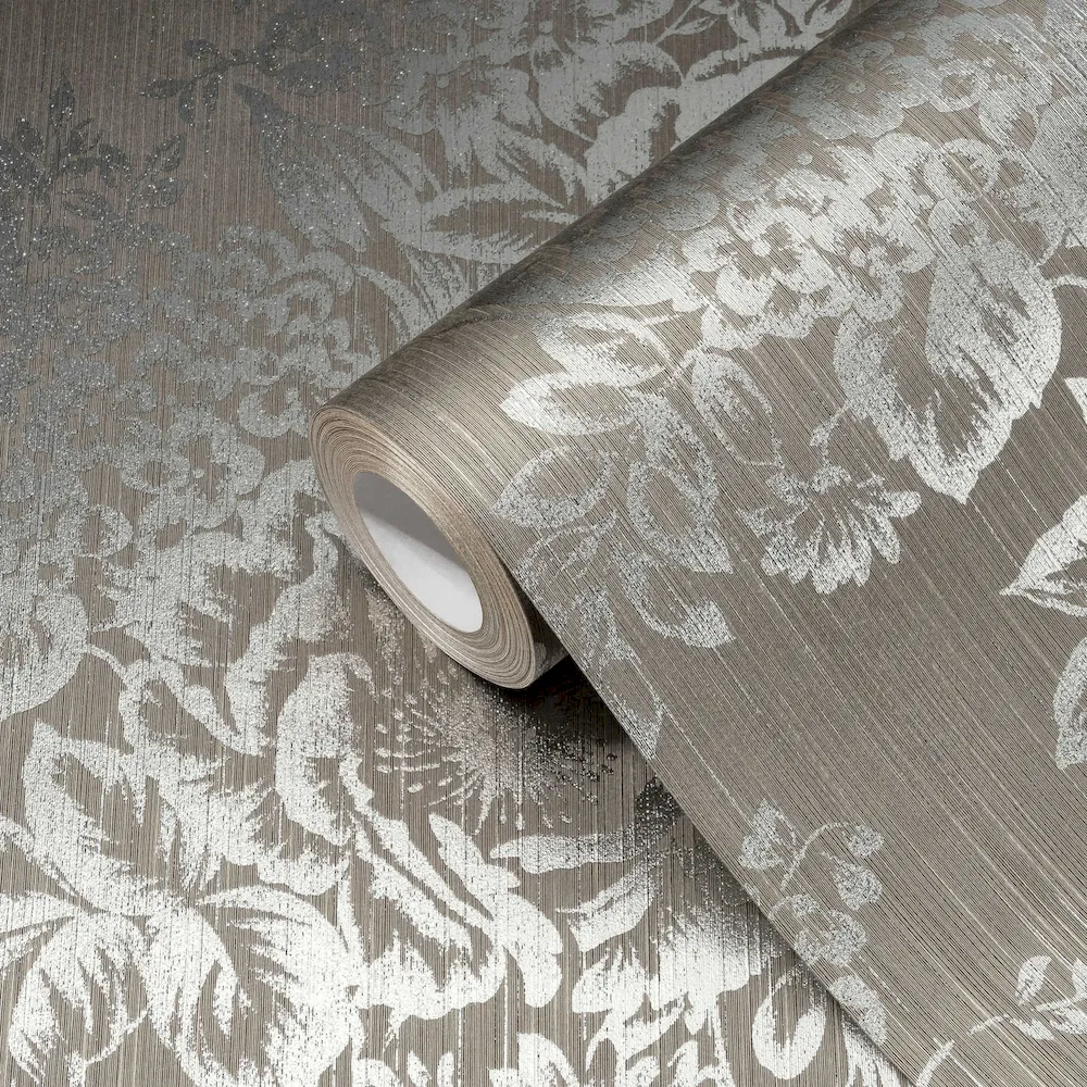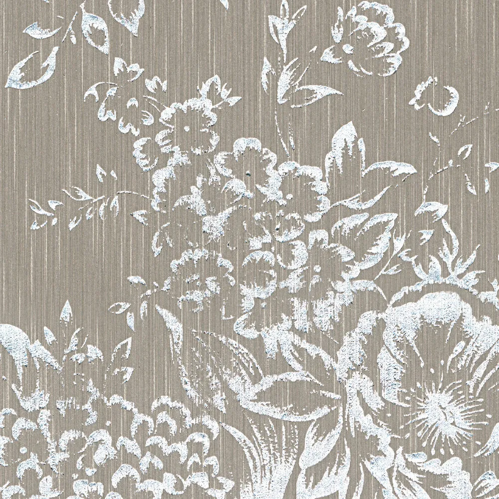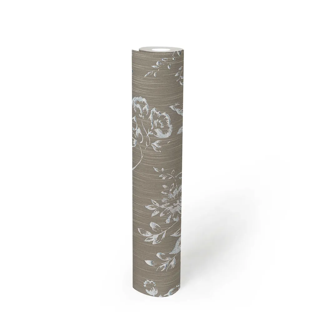 Tapeta 30657-4 AP Metallic Silk AS Creation teksturowana ze srebrnym motywem kwiatowym - srebrny, brązowy