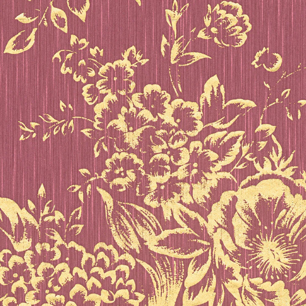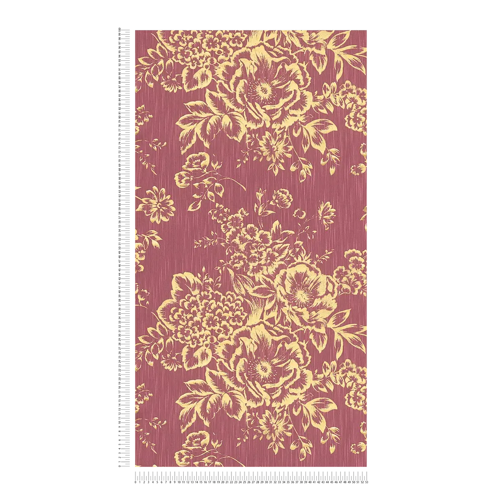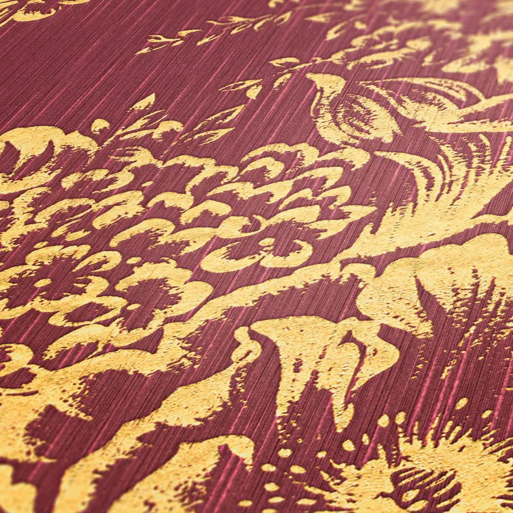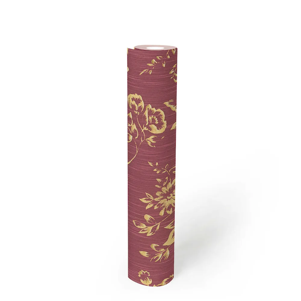 Tapeta 30657-6 AP Metallic Silk AS Creation teksturowana ze złotym kwiatowym wzorem - złoto, czerwień