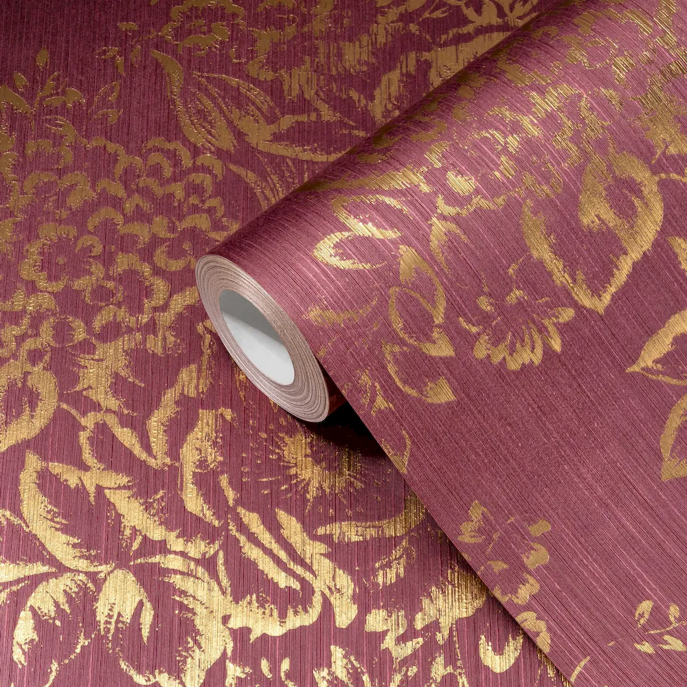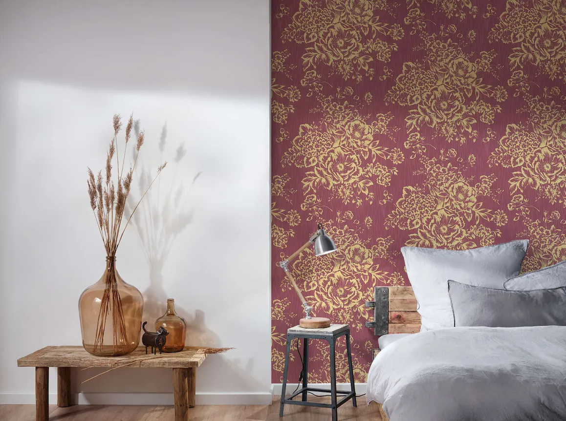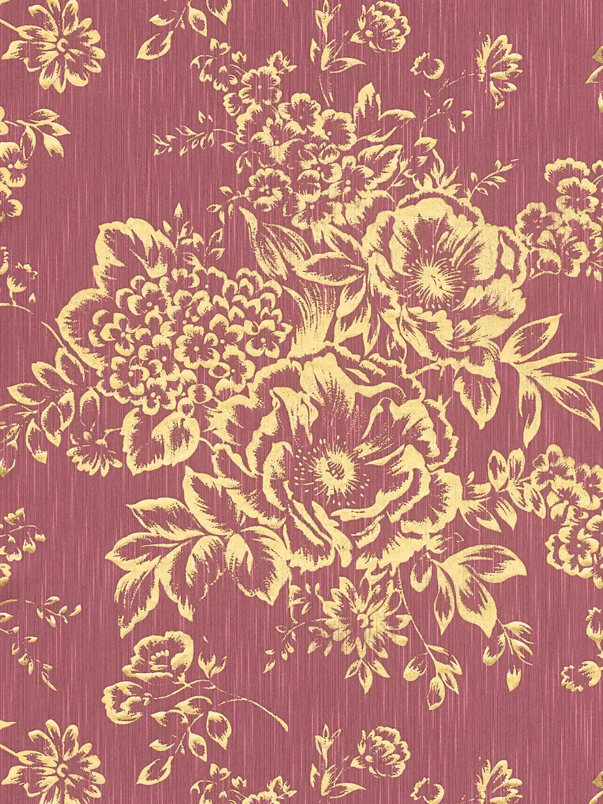Tapeta 30657-6 AP Metallic Silk AS Creation teksturowana ze złotym kwiatowym wzorem - złoto, czerwień