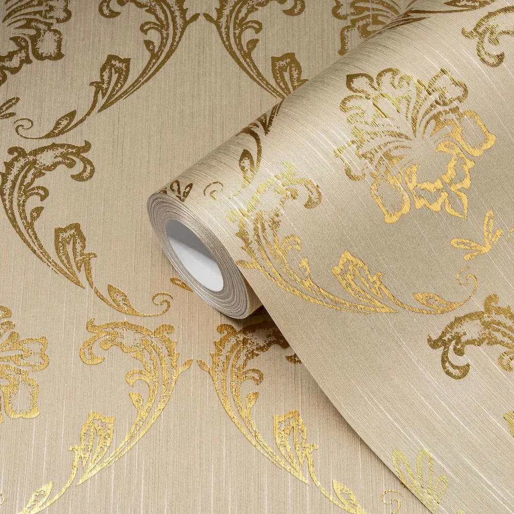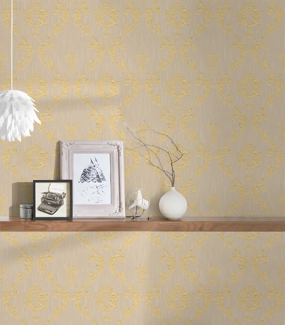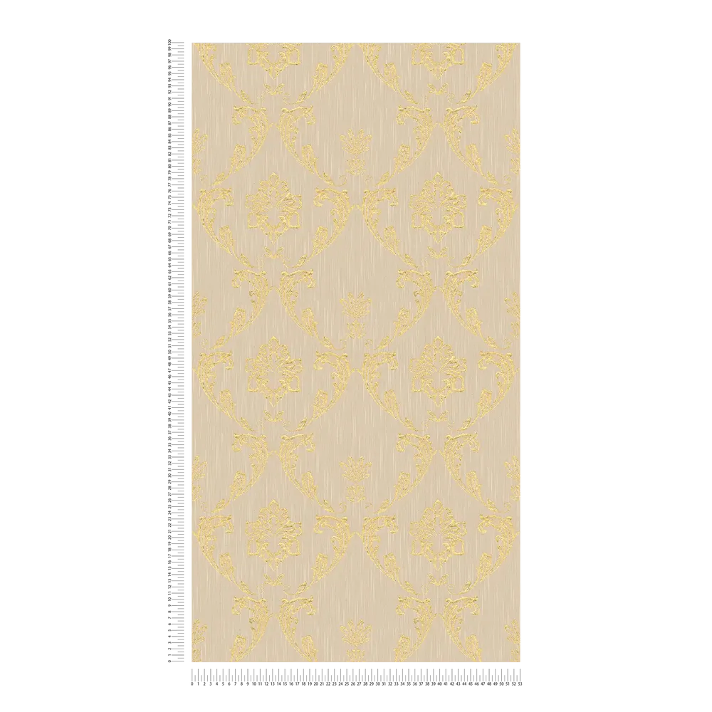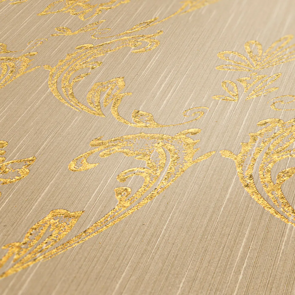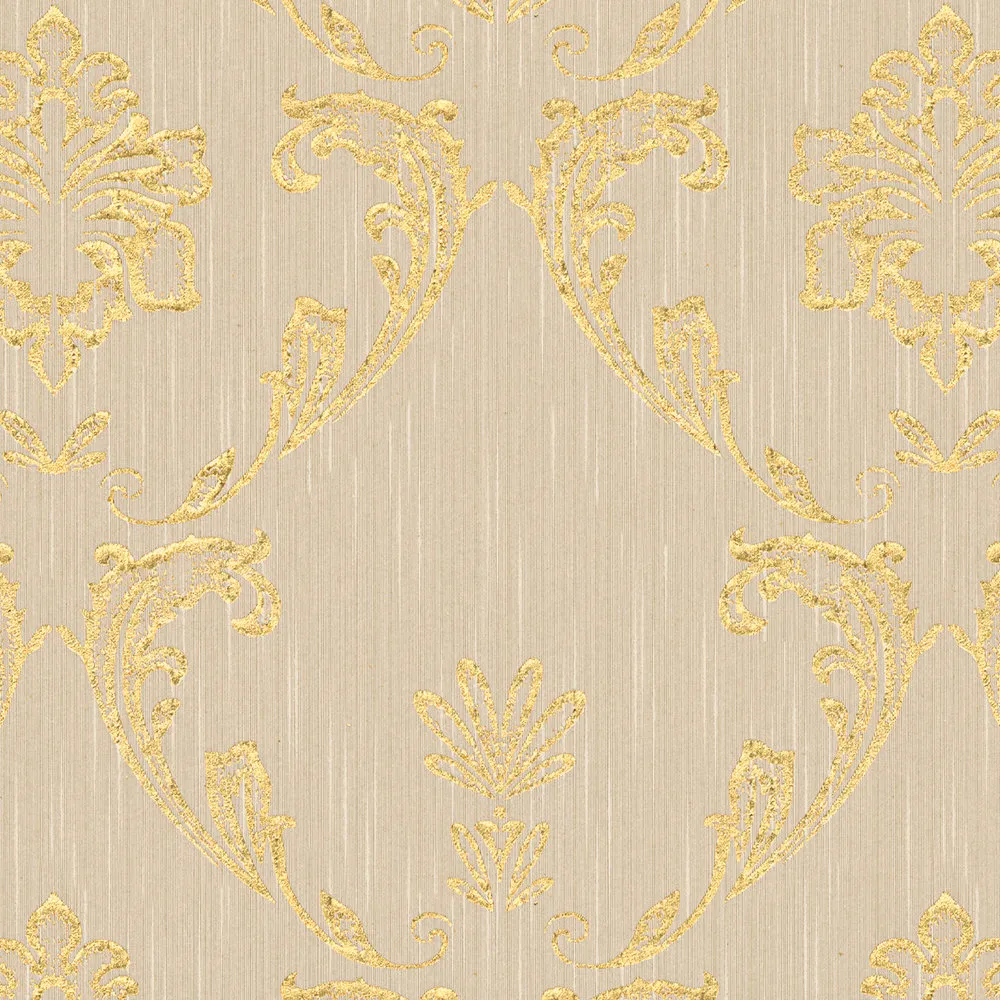Tapeta 30658-2 AP Metallic Silk AS Creation ornament z kwiatowymi elementami w kolorze złoto - złotym, beżowym