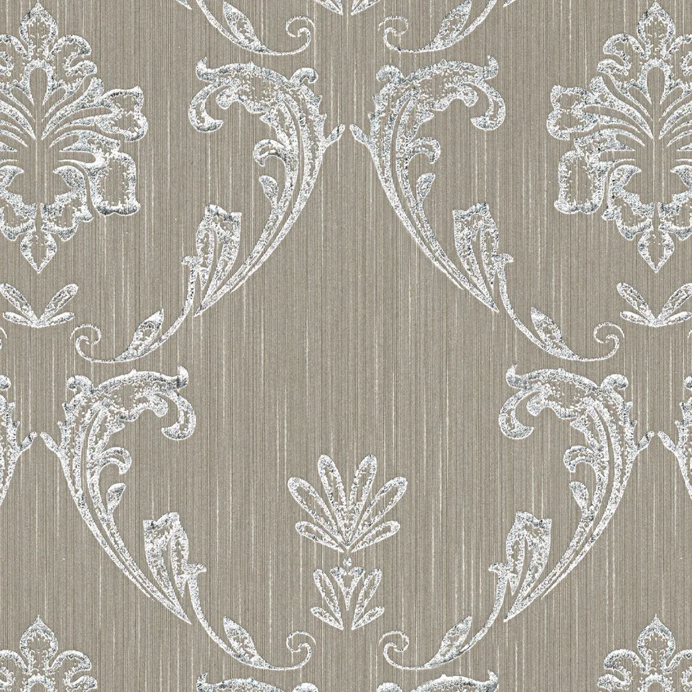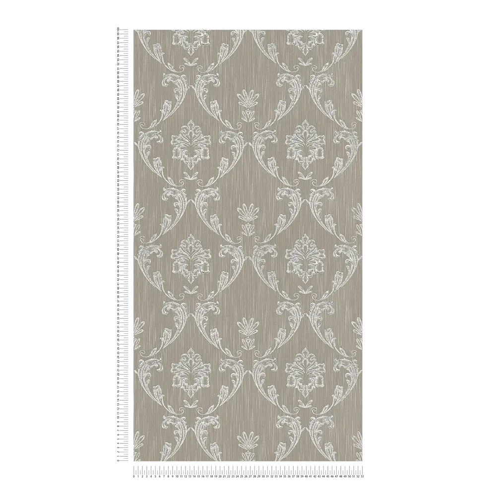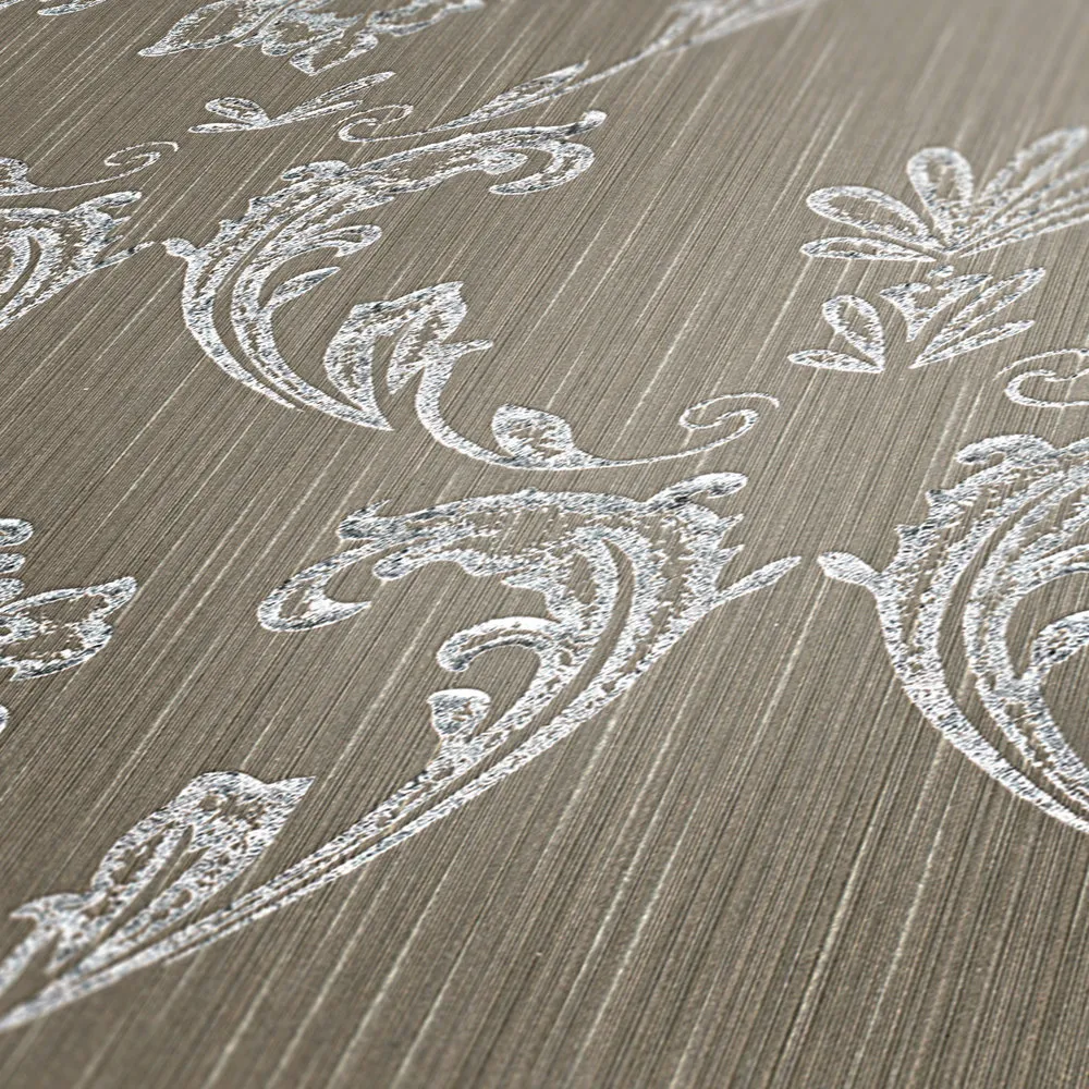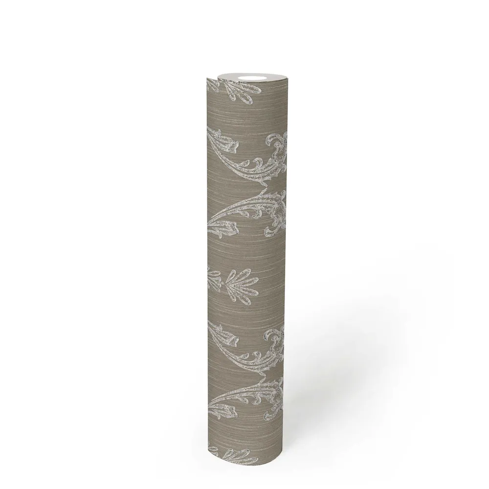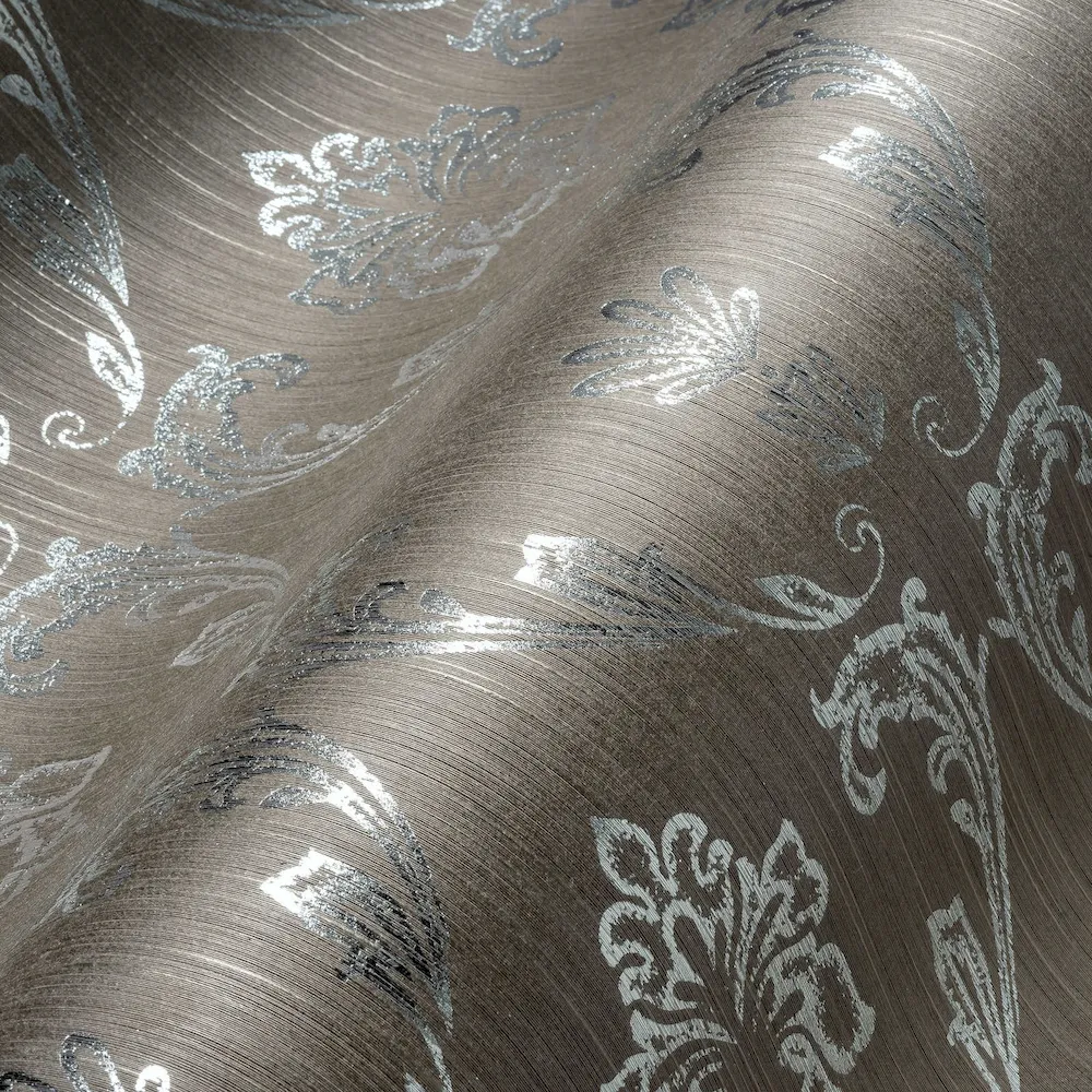 Tapeta 30658-3 AP Metallic Silk AS Creation ornament z kwiatowymi elementami w kolorze srebrno - srebrnym, brązowym