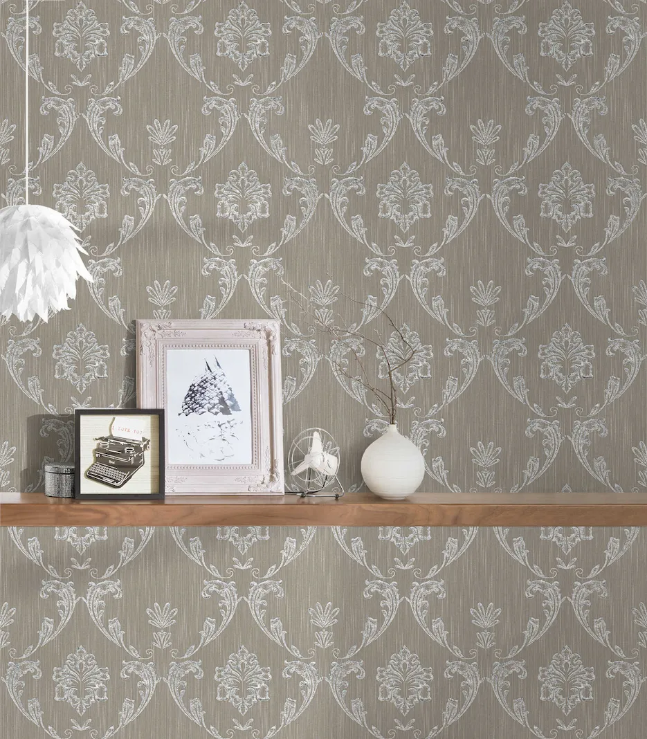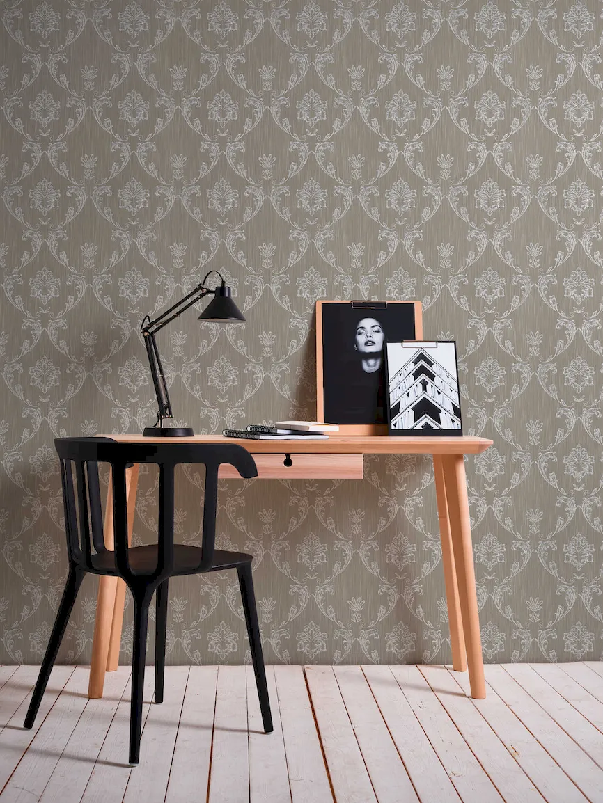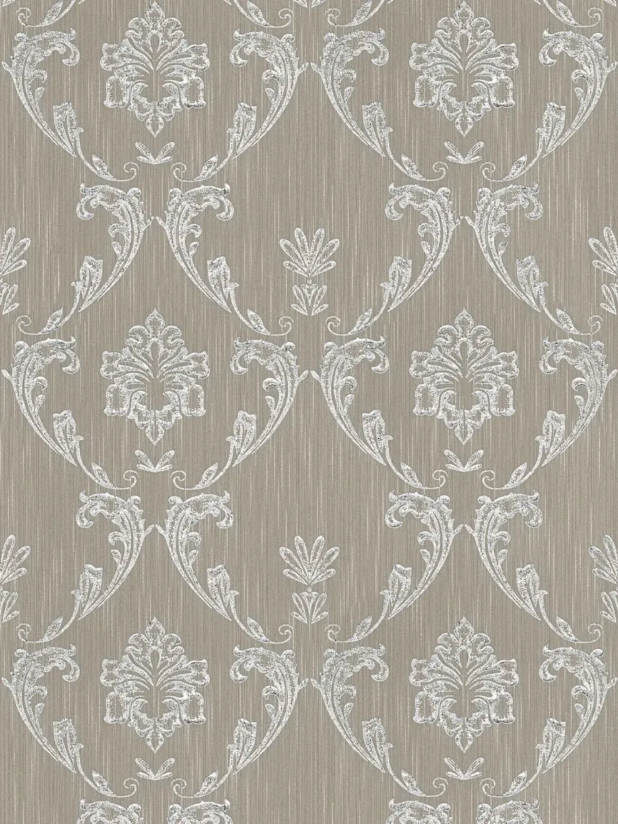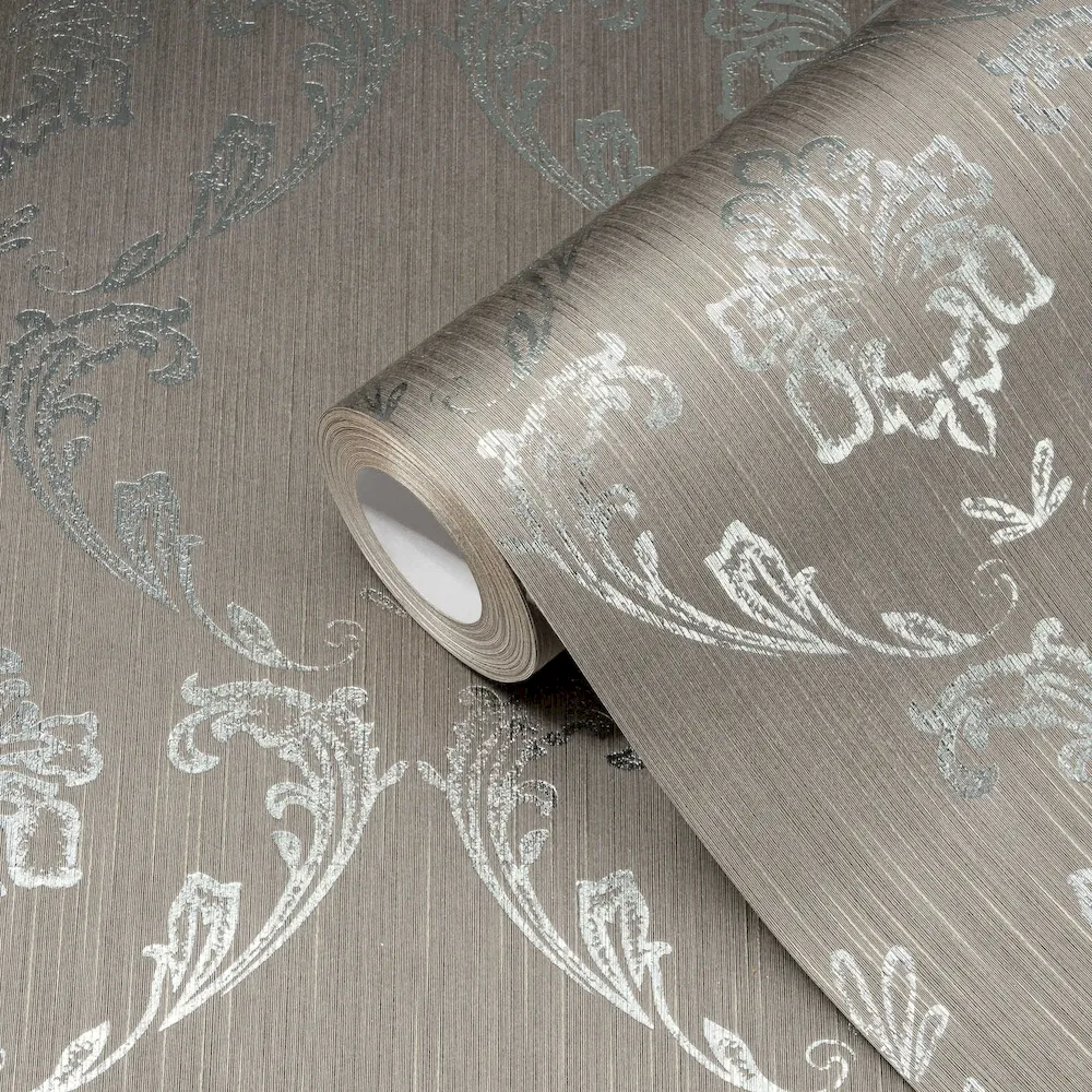 Tapeta 30658-3 AP Metallic Silk AS Creation ornament z kwiatowymi elementami w kolorze srebrno - srebrnym, brązowym