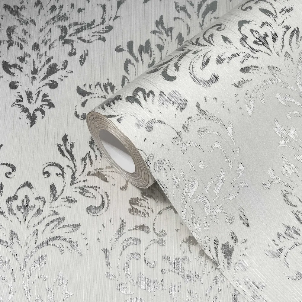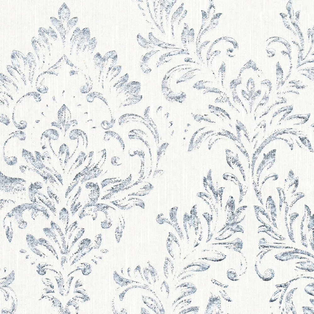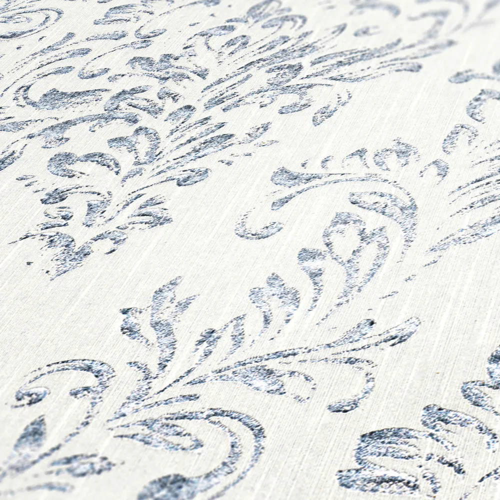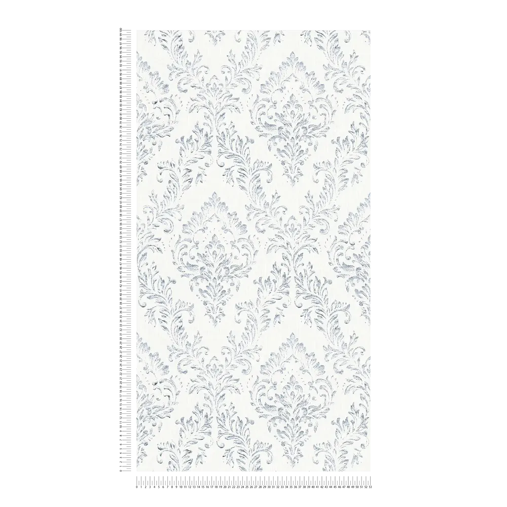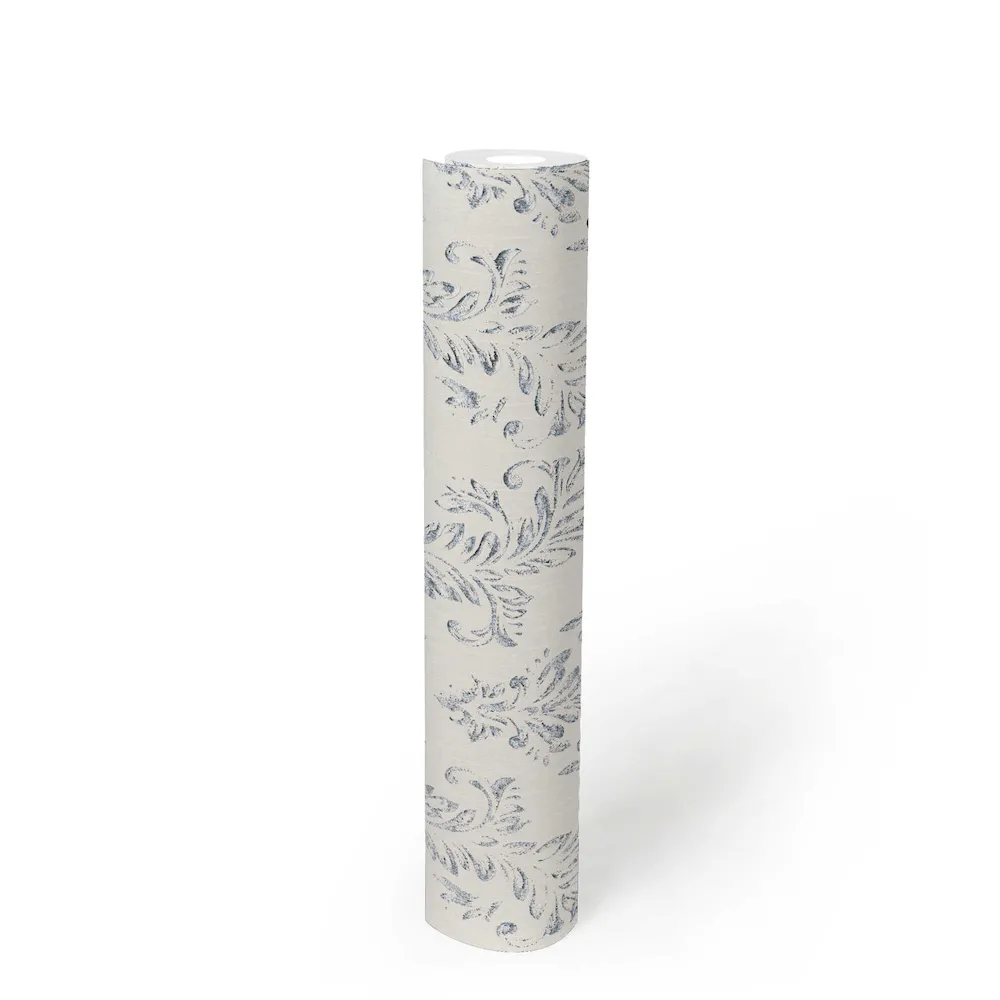 Tapeta 30659-1 AP Metallic Silk AS Creation ornament w kwiatowy wzór z efektem brokatu - srebrno-biała