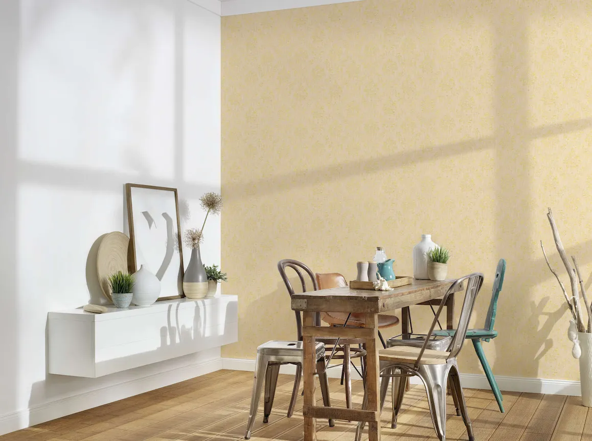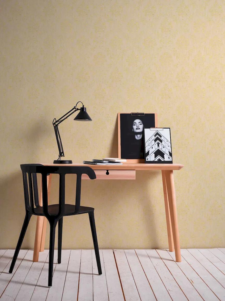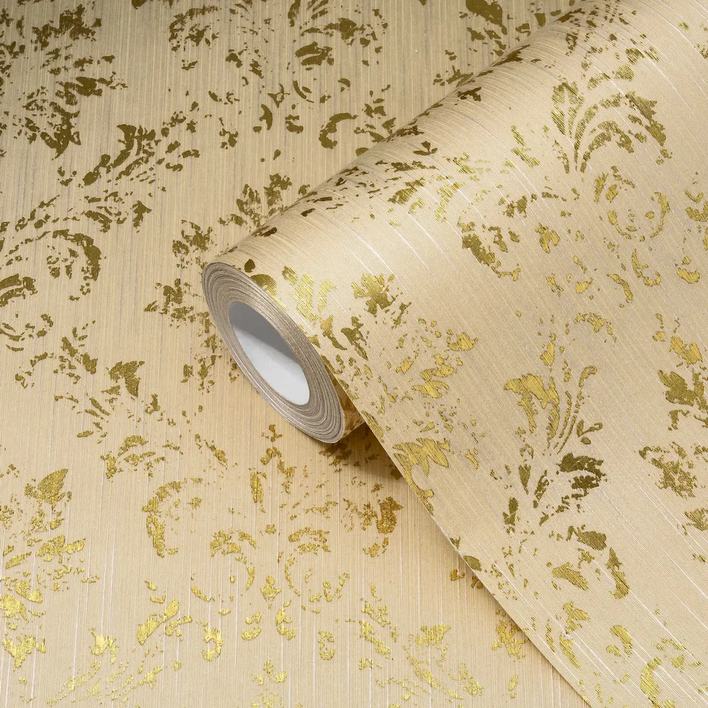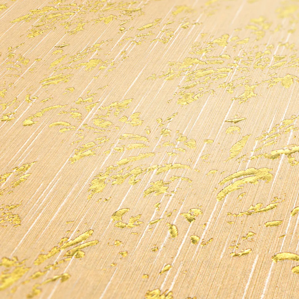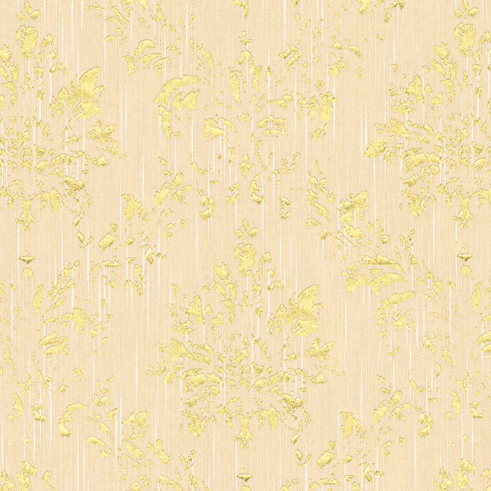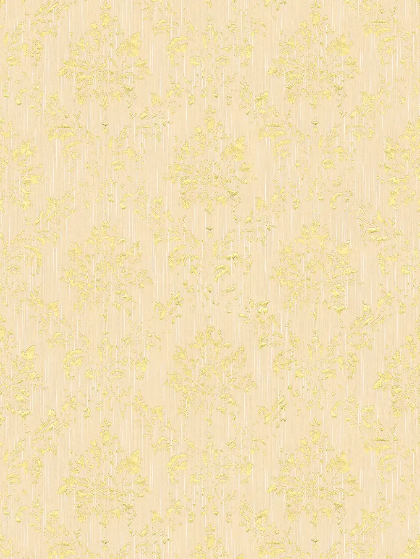 Tapeta 30662-3 AP Metallic Silk AS Creation żółta ornament z złotym połyskiem - krem, złoto
