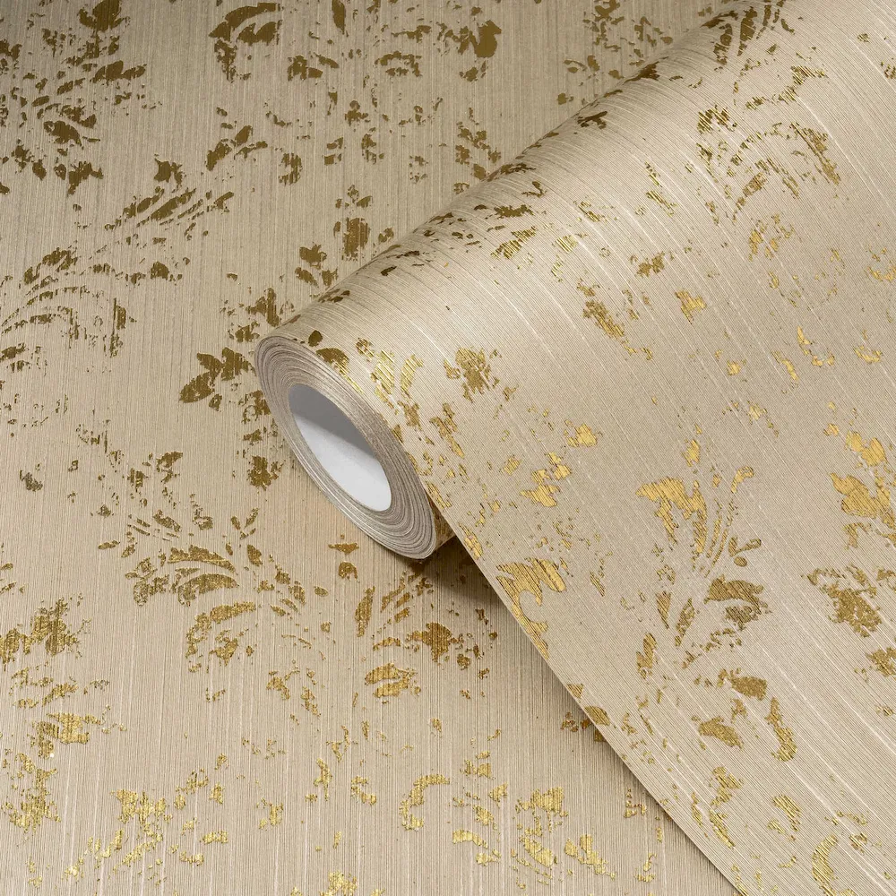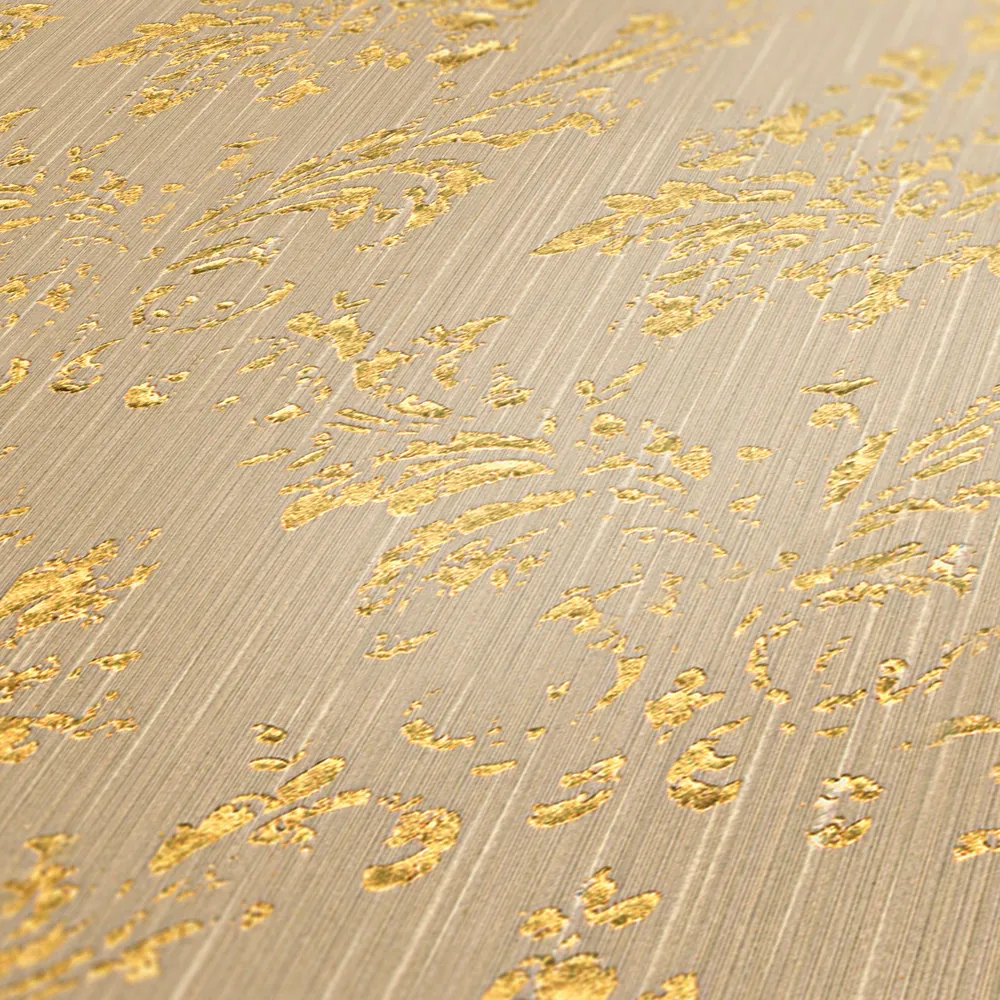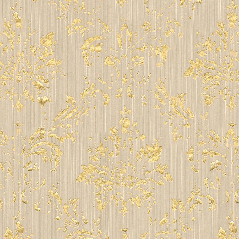 Tapeta 30662-4 AP Metallic Silk AS Creation beżowa ornament z złotym połyskiem - beżowy, złoty