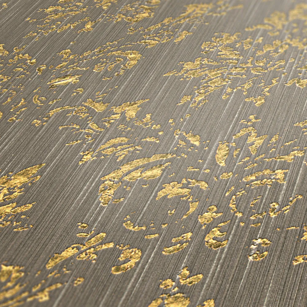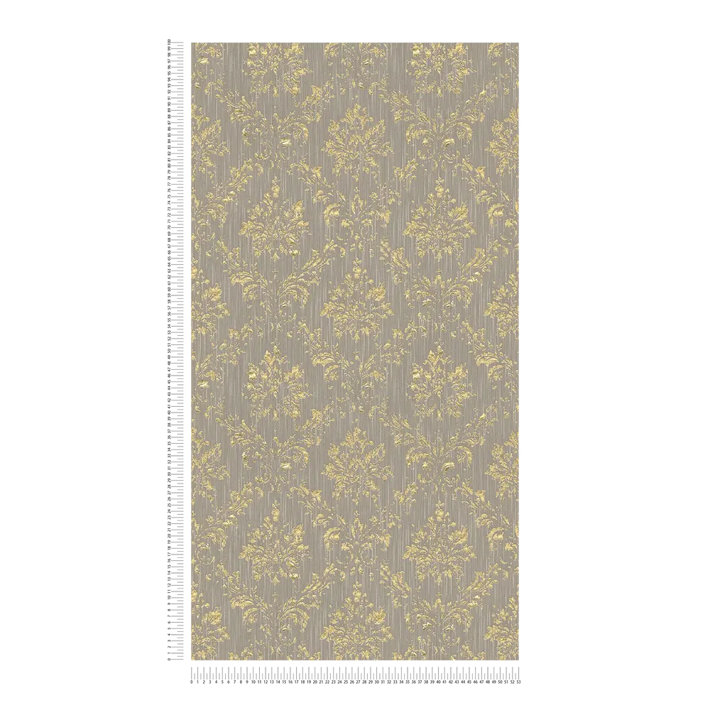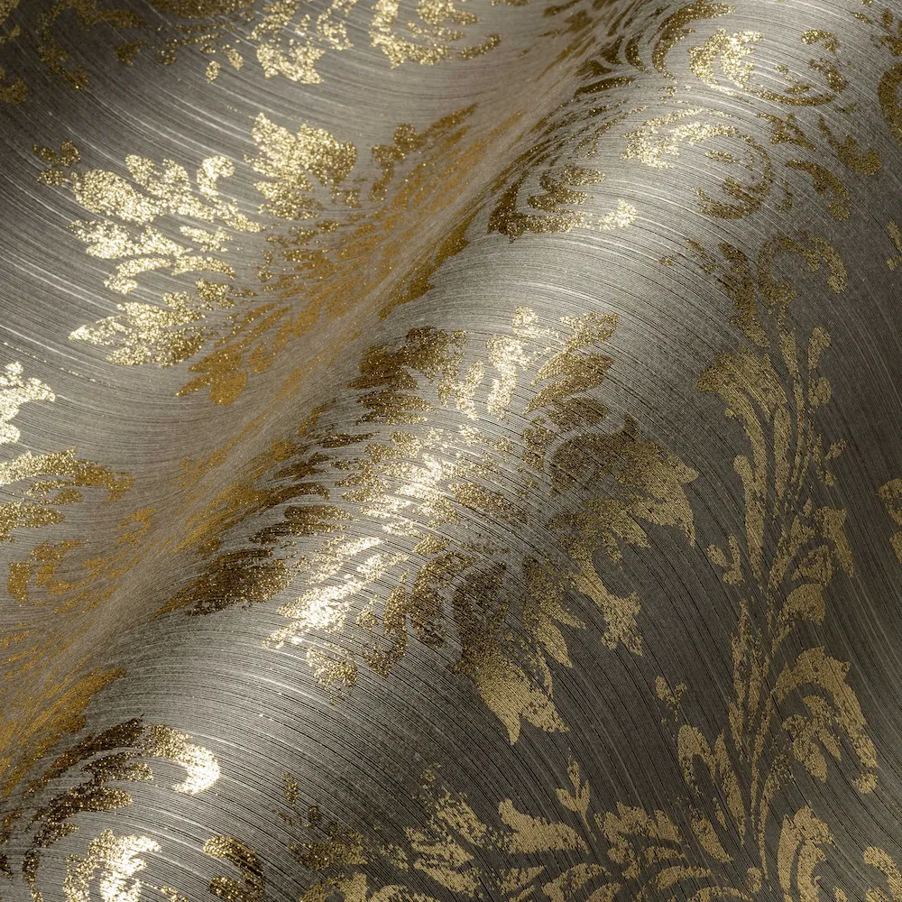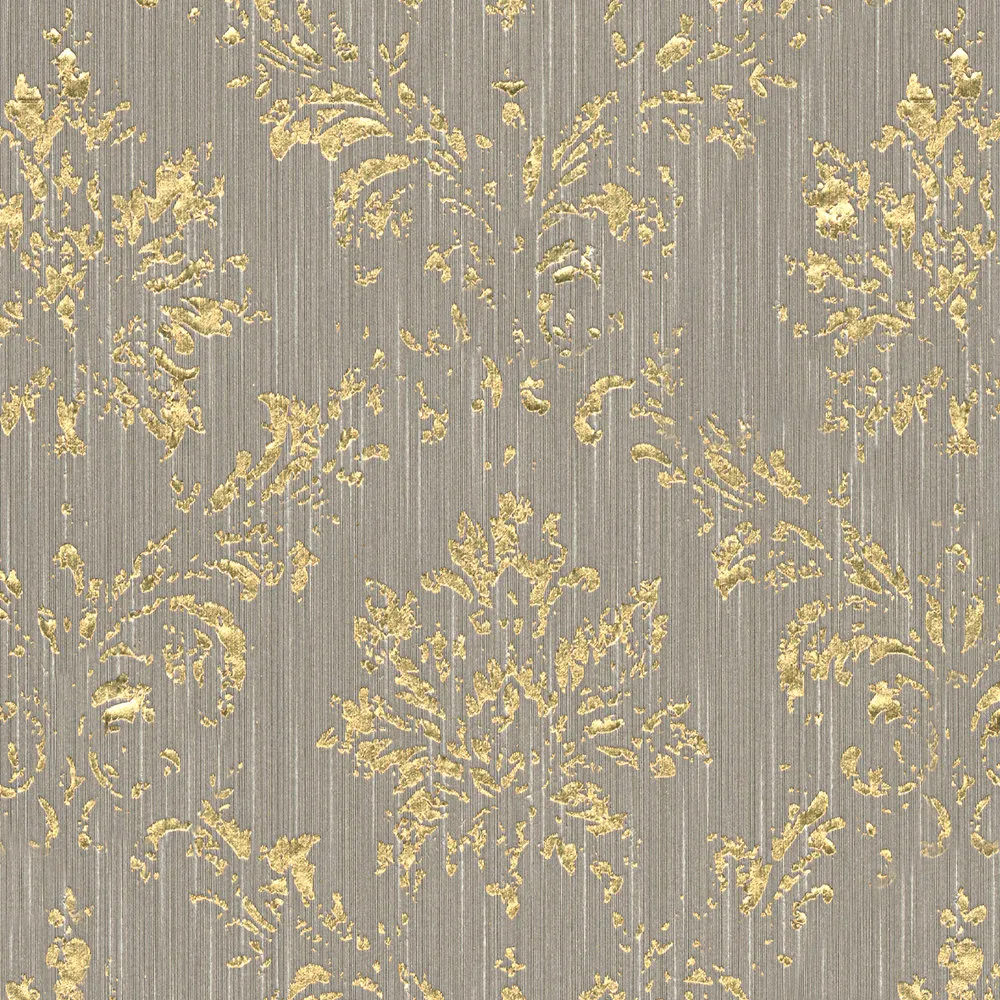 Tapeta 30662-5 AP Metallic Silk AS Creation szara ornament z złotym połyskiem - beżowy, złoty