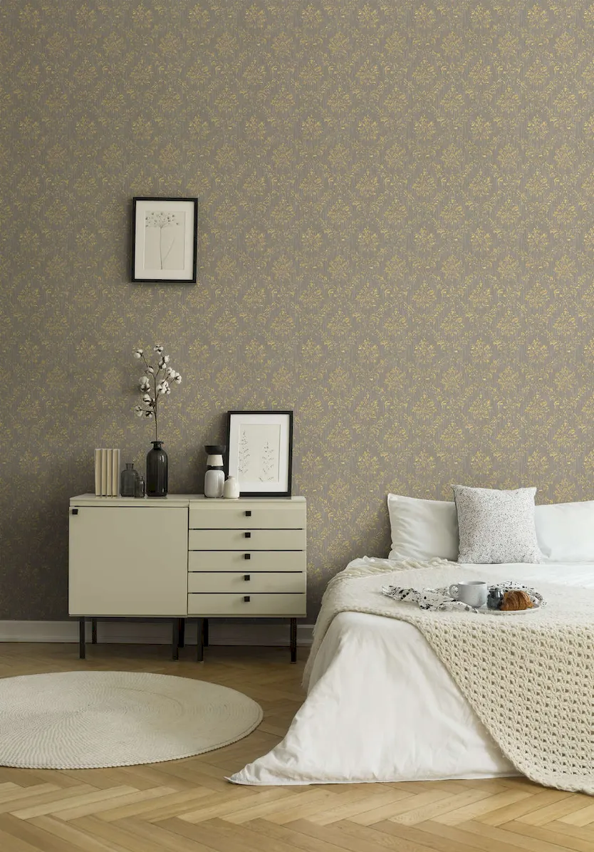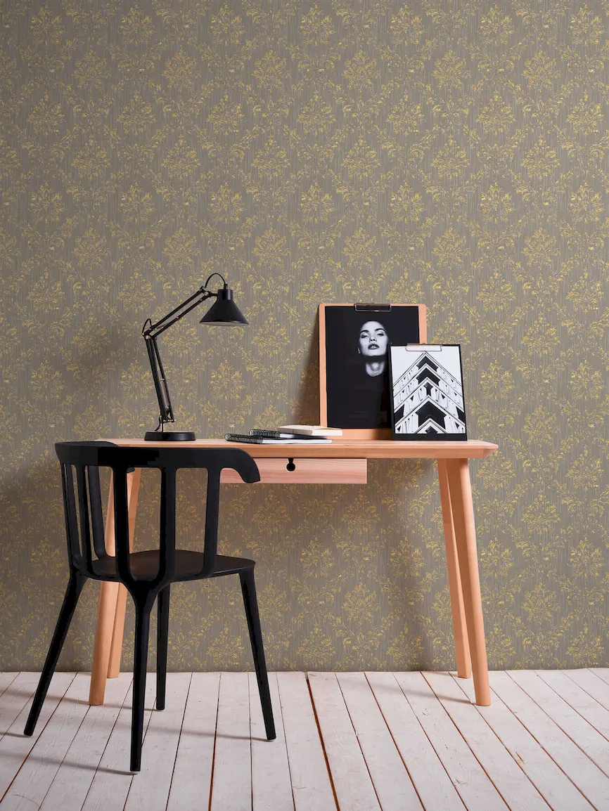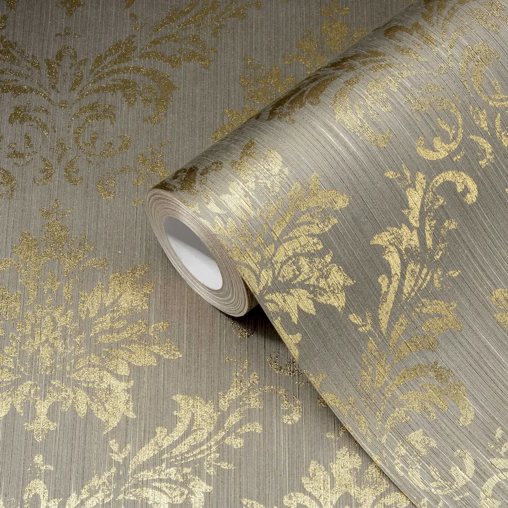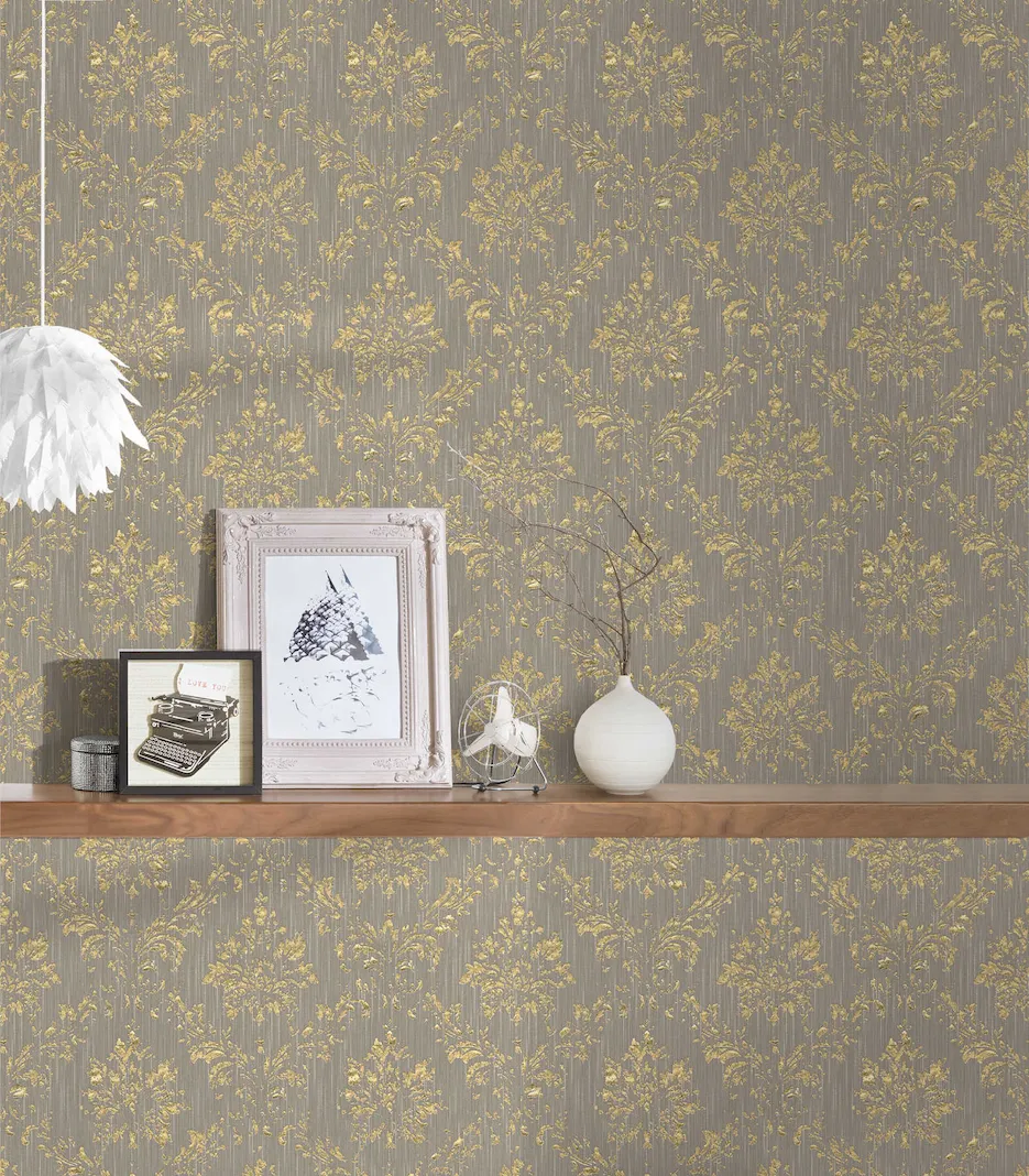 Tapeta 30662-5 AP Metallic Silk AS Creation szara ornament z złotym połyskiem - beżowy, złoty