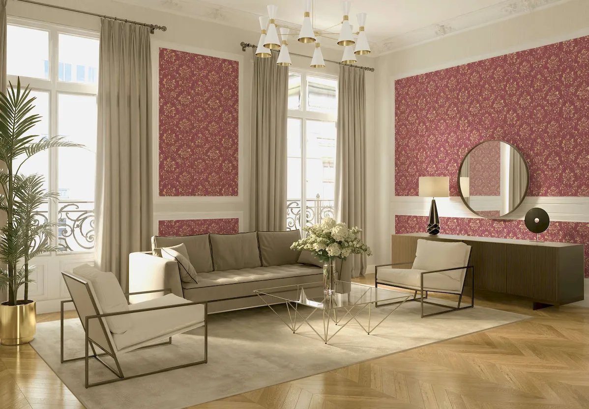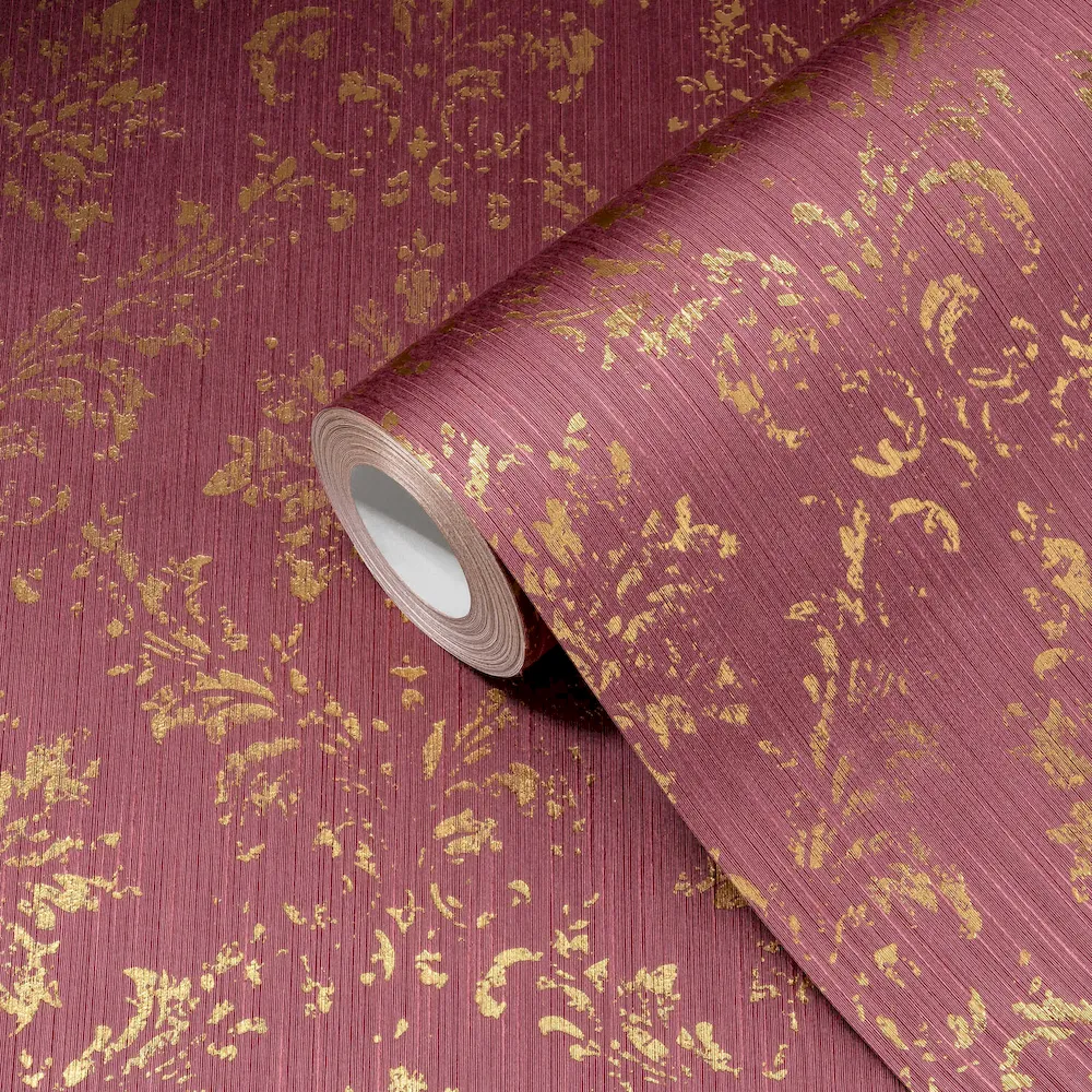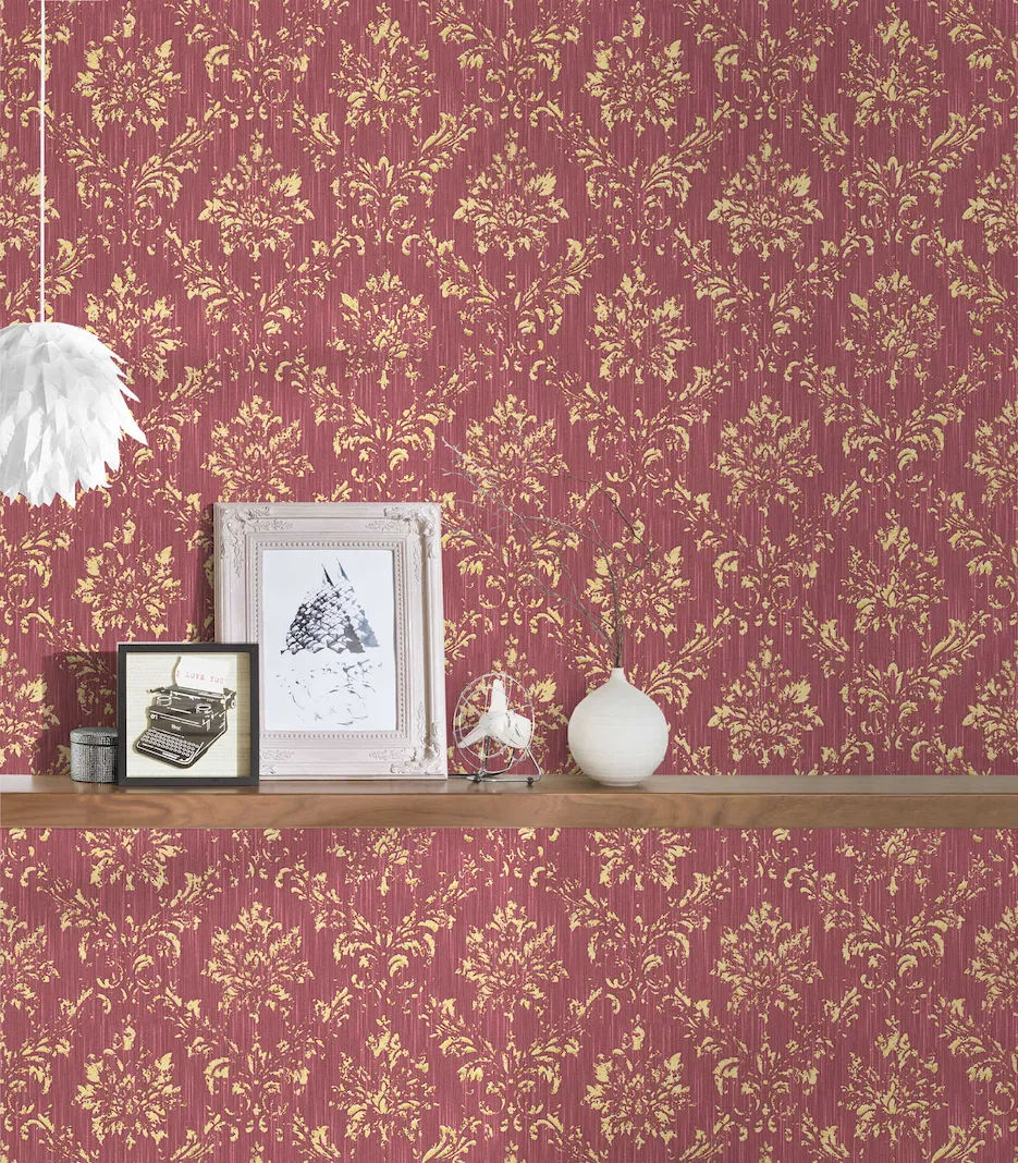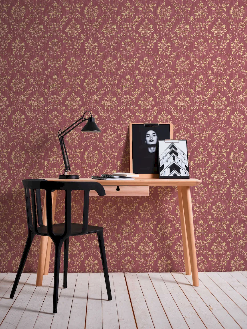 Tapeta 30662-6 AP Metallic Silk AS Creation czerwona ornament z złotym połyskiem - czerwień, złoto