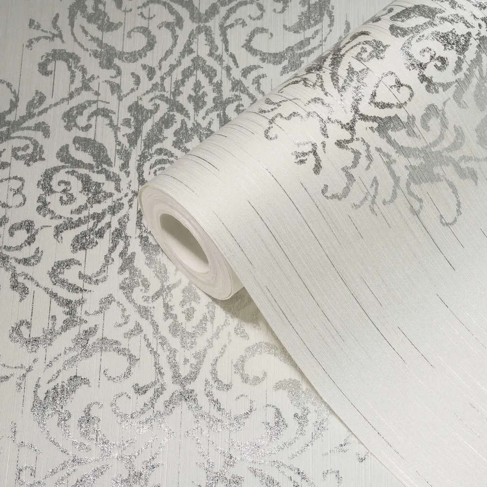 Tapeta 31945-1 Luxury Wallpaper AS Creation ozdobna z efektem metalicznympostarzana - biała, srebrna, niebieska