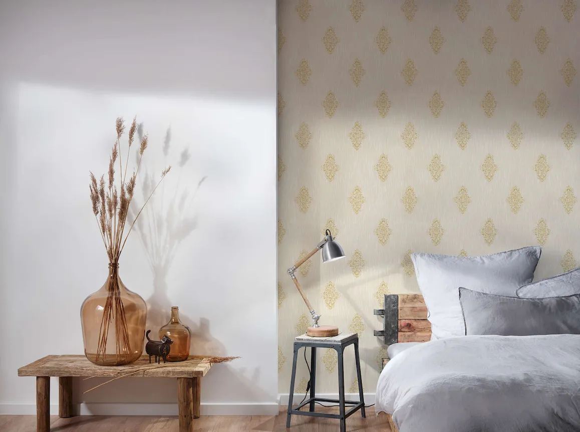 Tapeta 31946-2 Luxury Wallpaper AS Creation w stylu postarzany metaliczny ornament - krem, złoto
