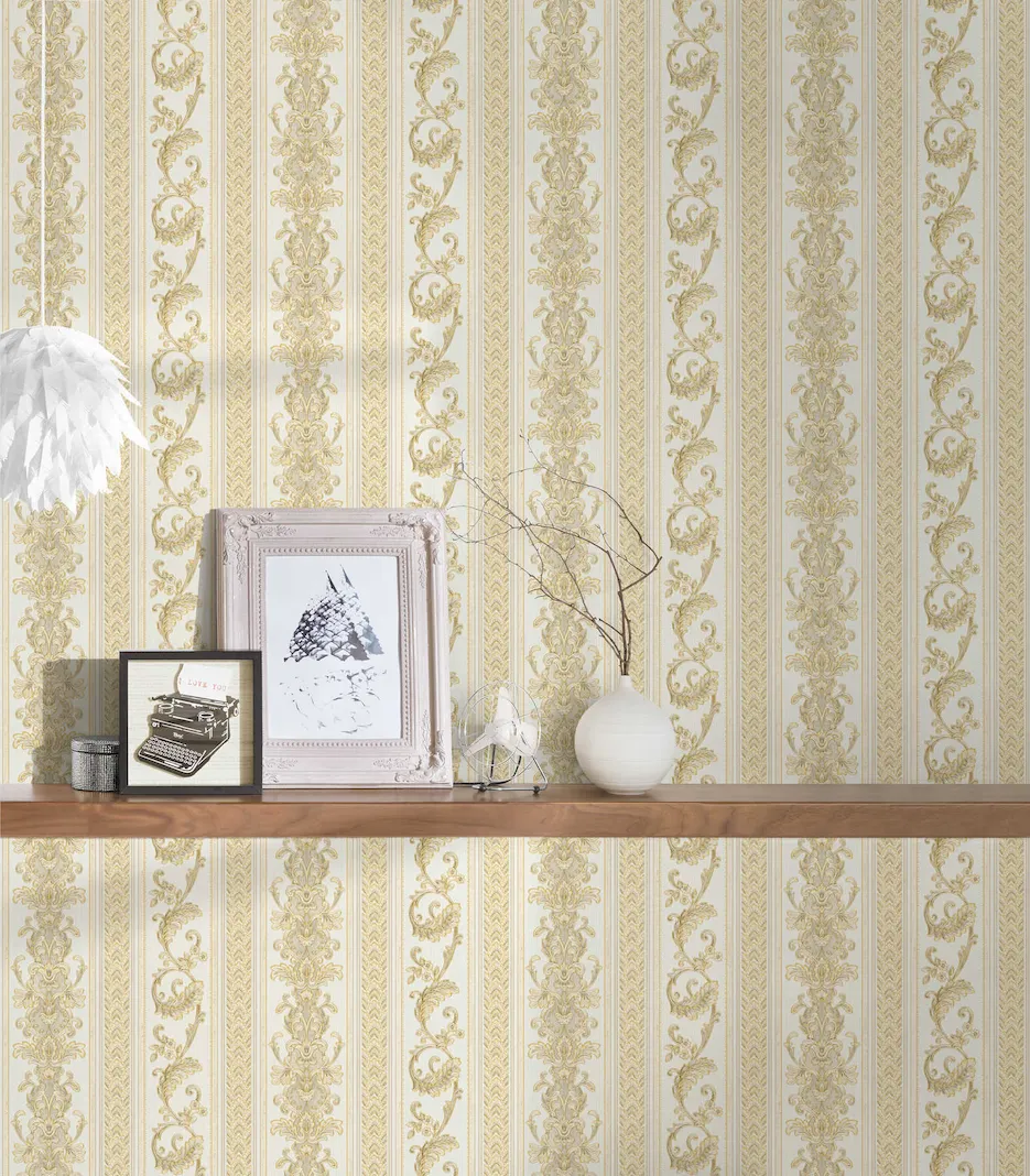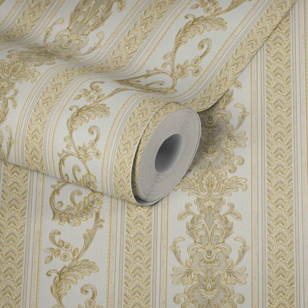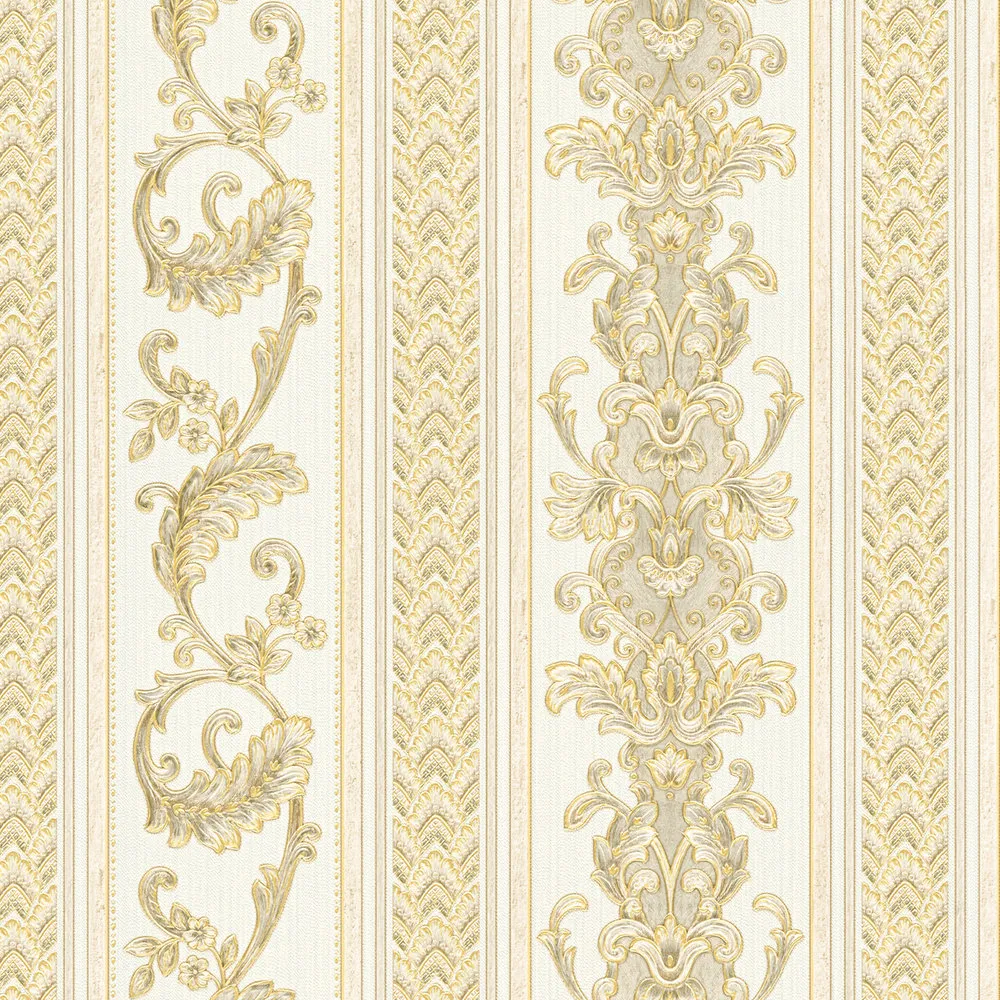 Tapeta 33547-3 Concerto 3 AS Creation barokowa w paski z ornamentalnym wzorem - kremowo-złotym