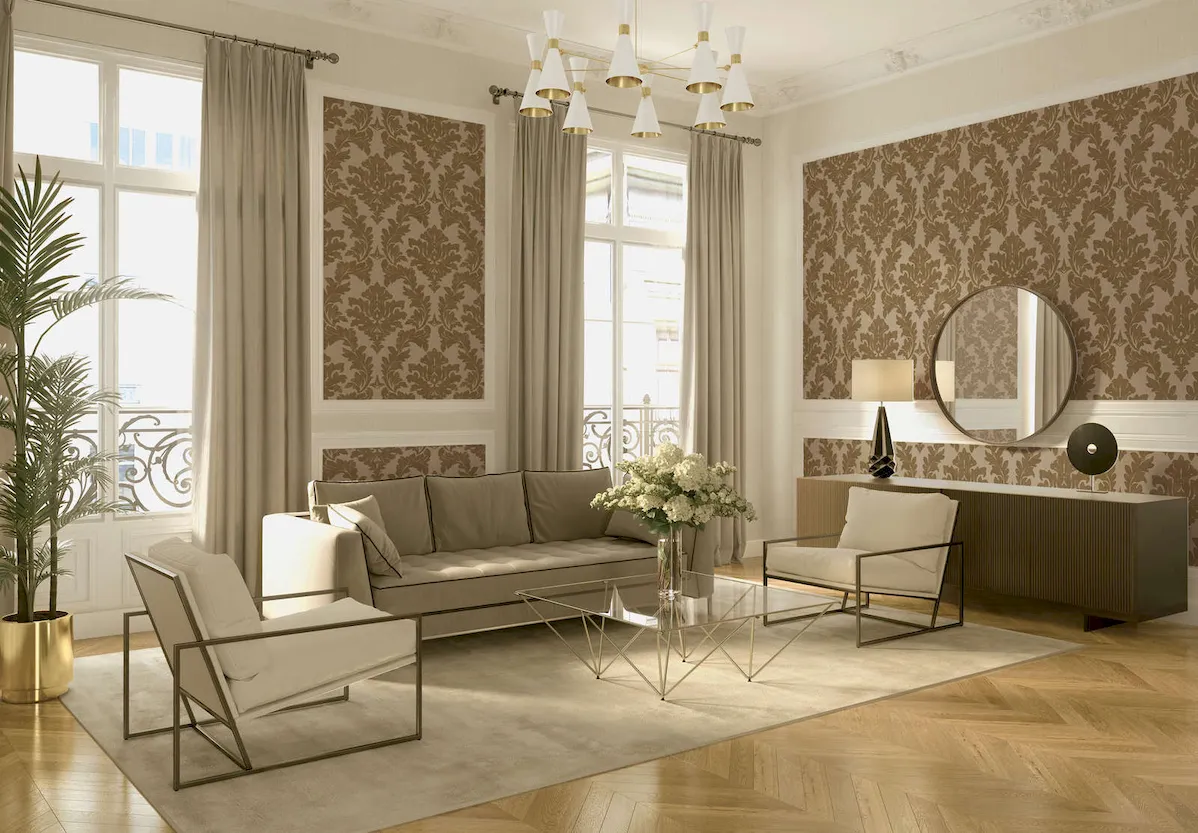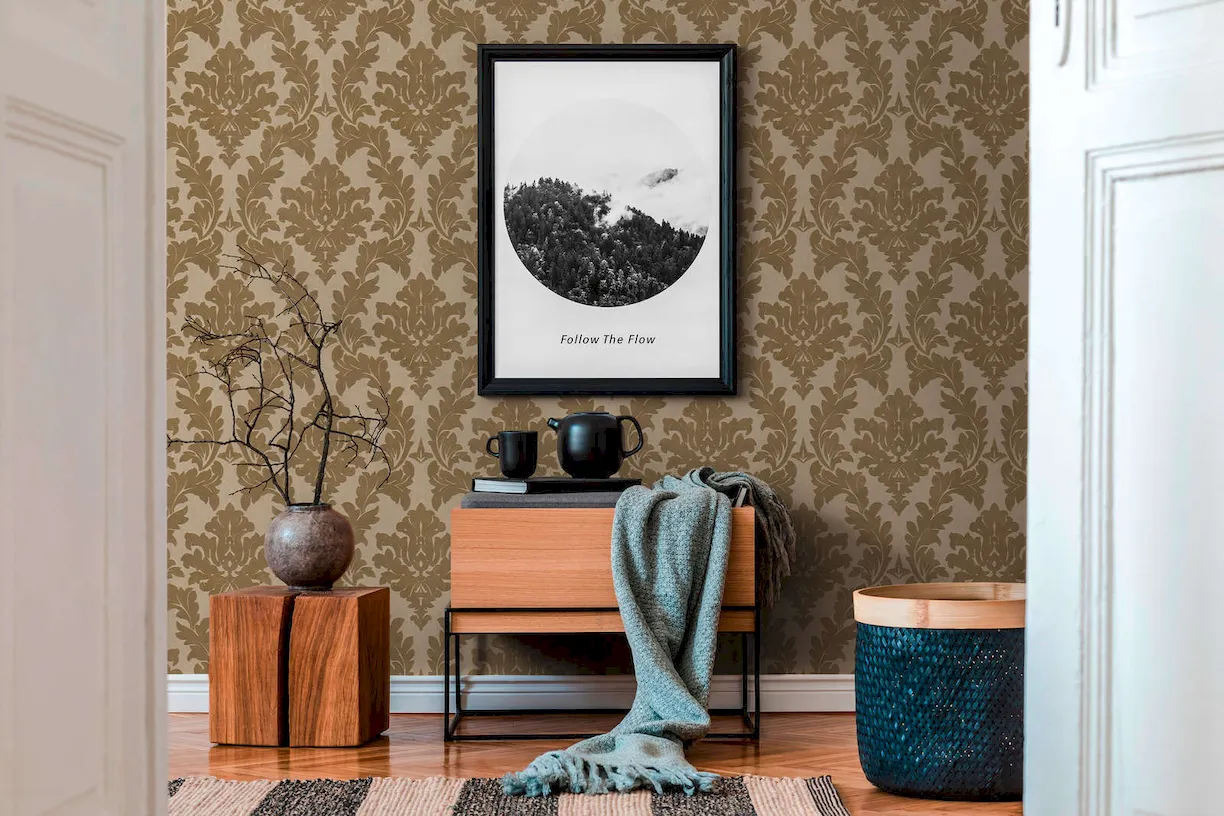 Tapeta 33580-2 AP Castello AS Creation barokowa z ornamentem i efektem tekstury w kolorze starego złota - metaliczny