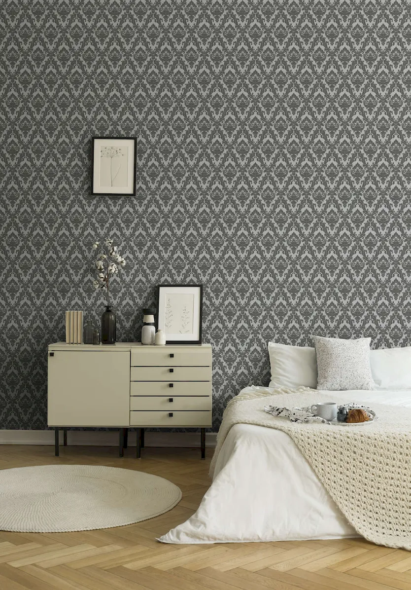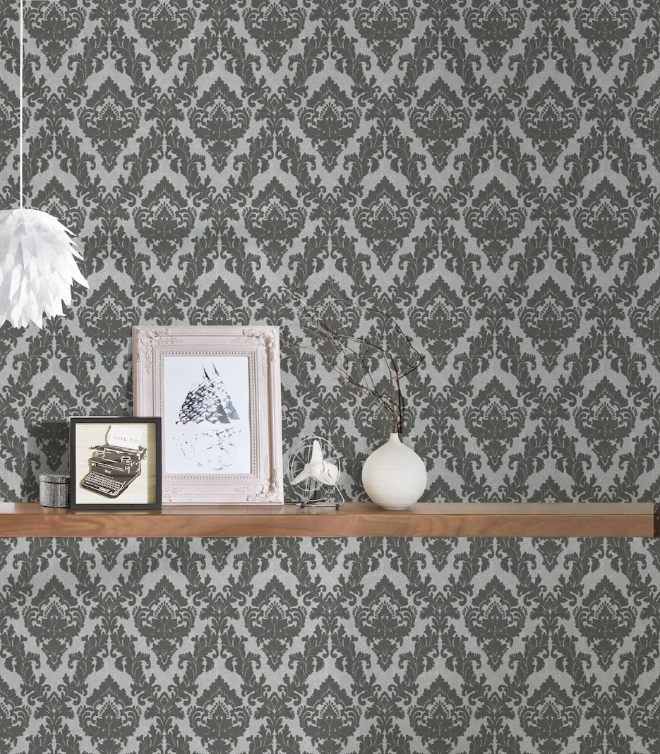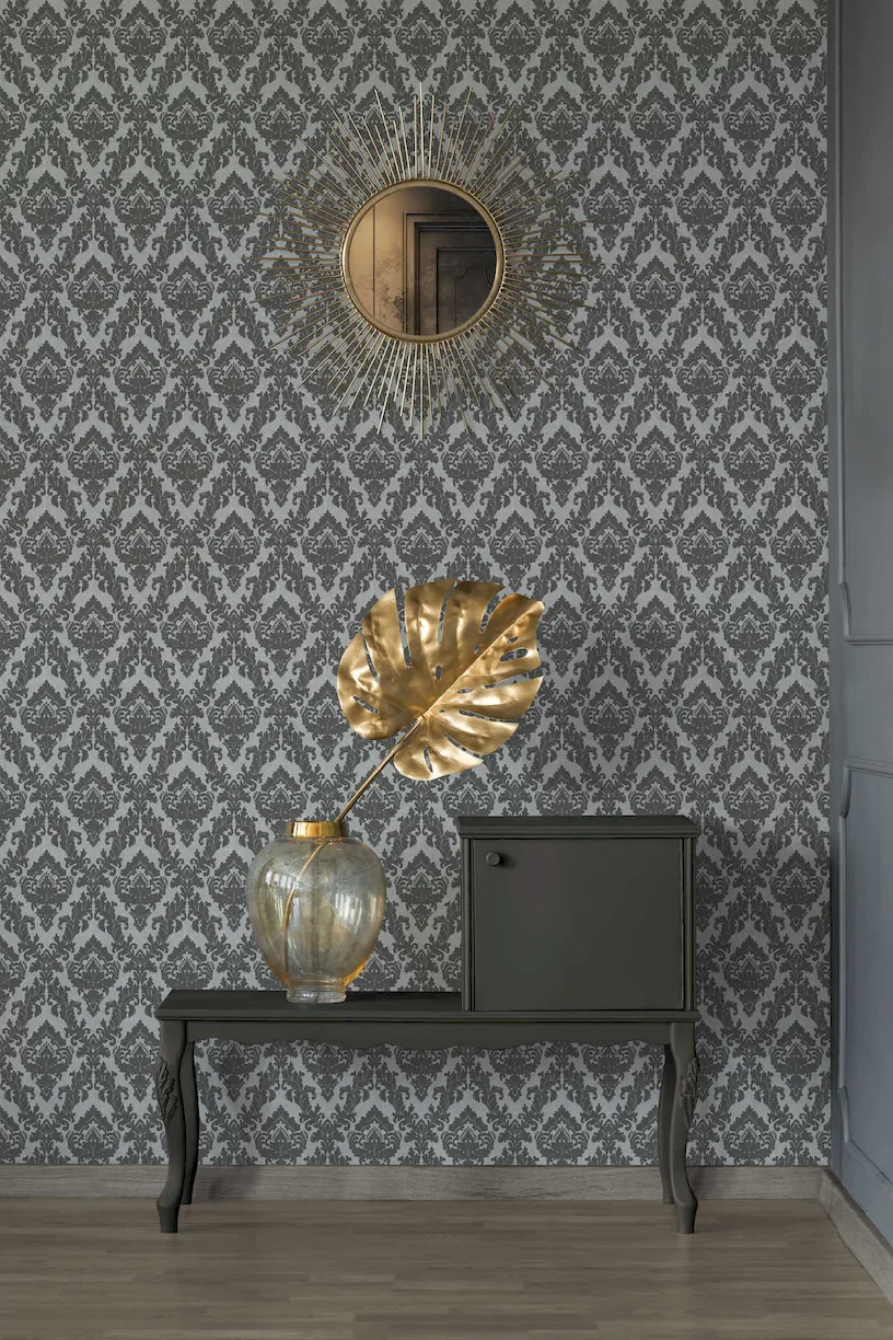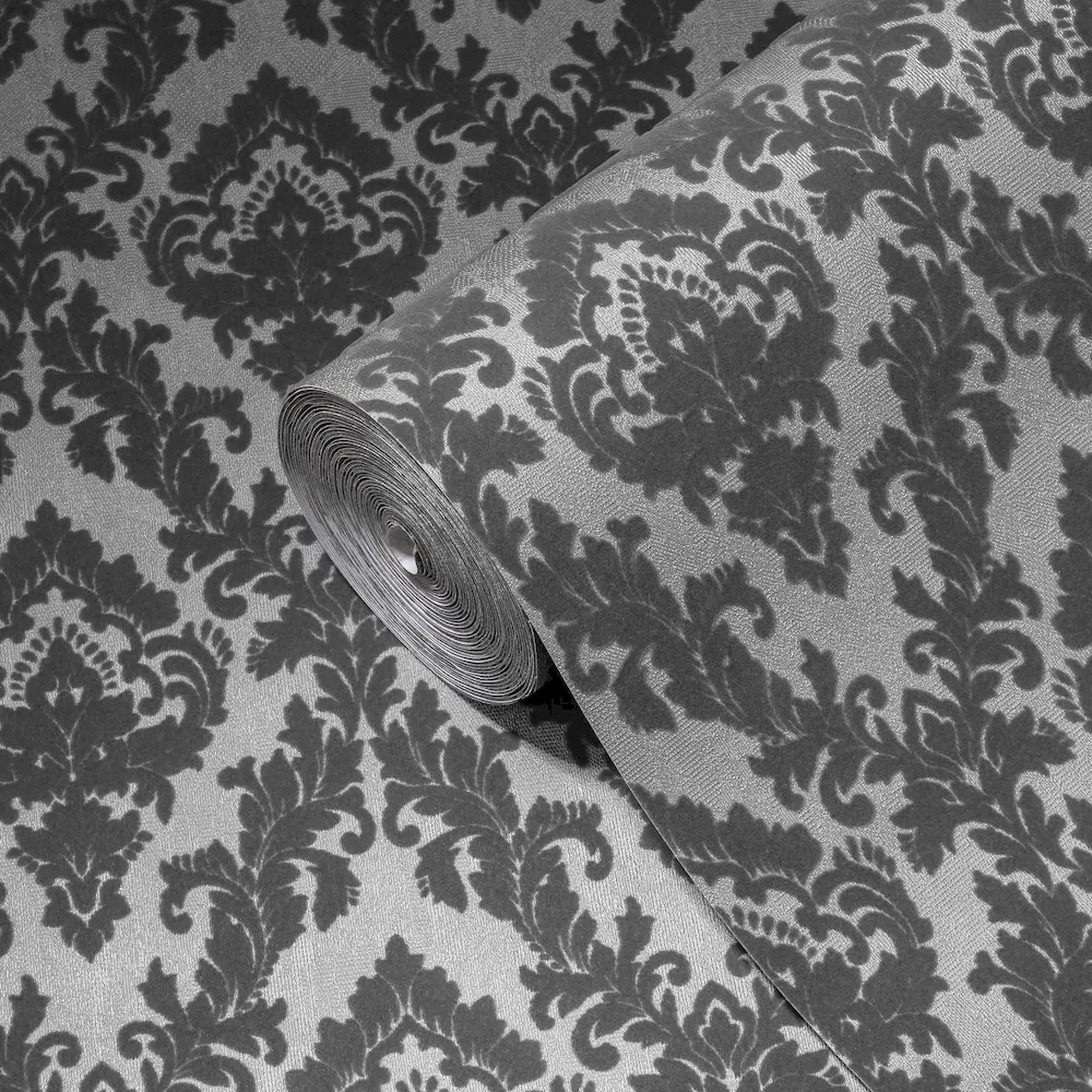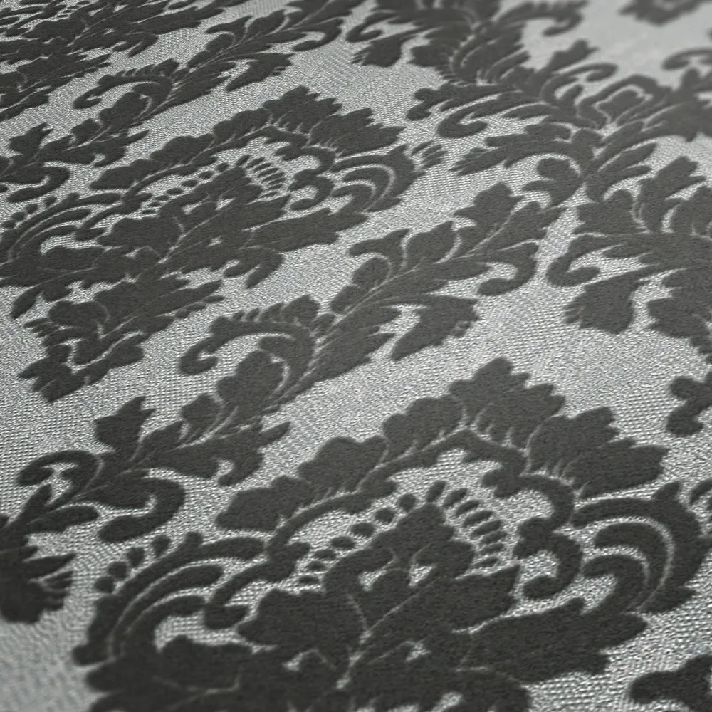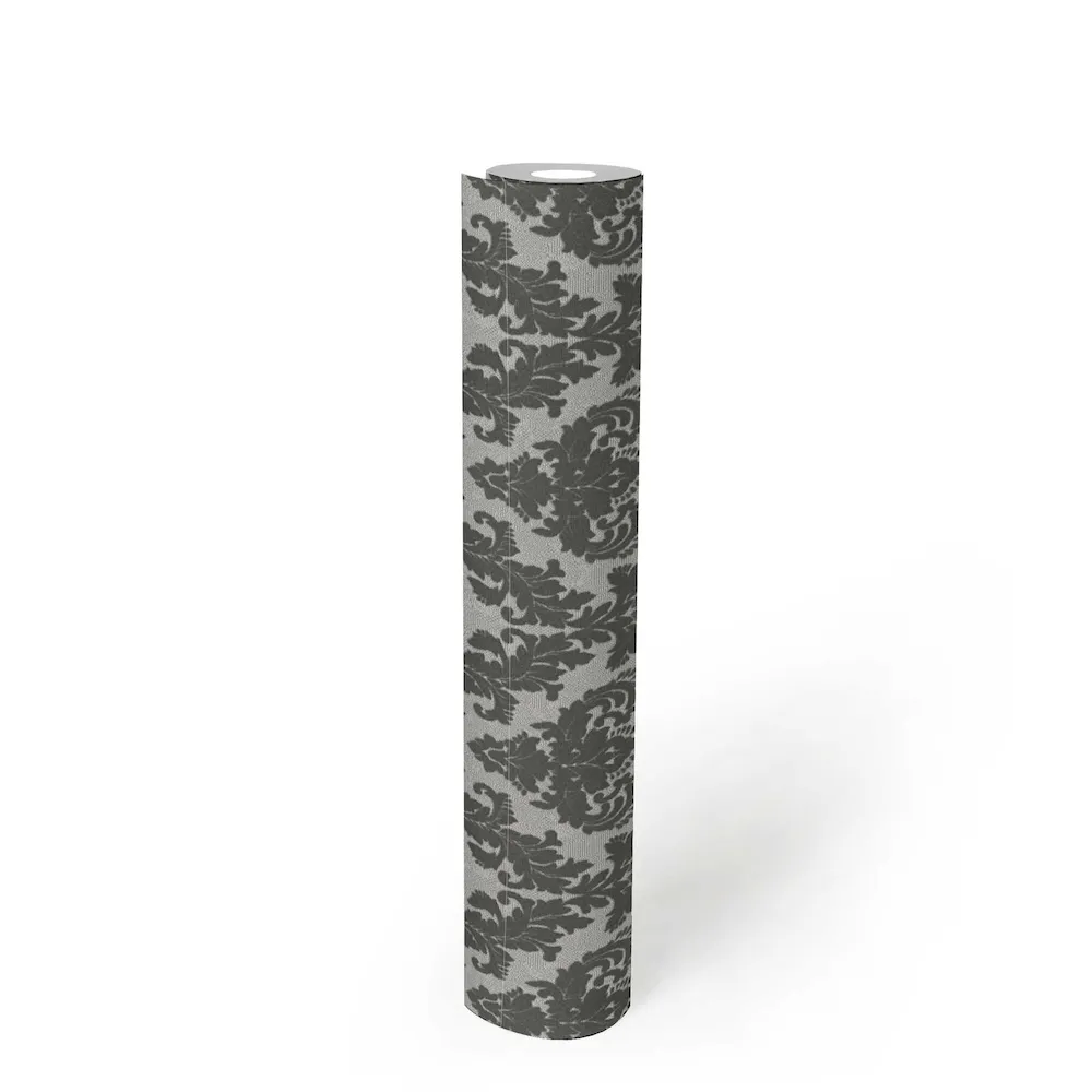 Tapeta 33582-3 AP Castello AS Creation ekskluzywna tapeta na flizelinie z prawdziwymi zdobieniami typu flock i barack – szara