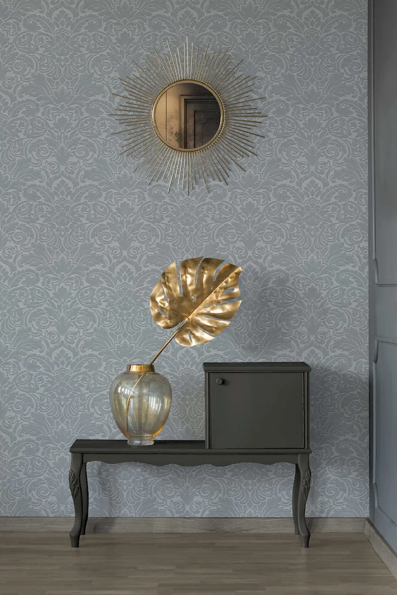 Tapeta 33583-3 AP Castello AS Creation metaliczna w stylu barokowym z wytłoczeniami teksturowanymi 3D - szara
