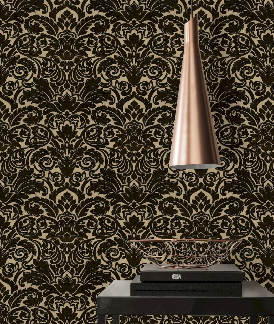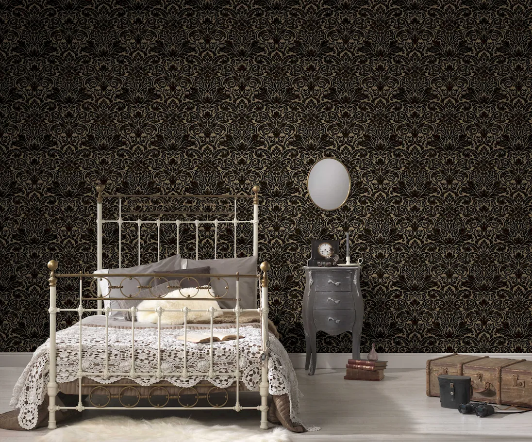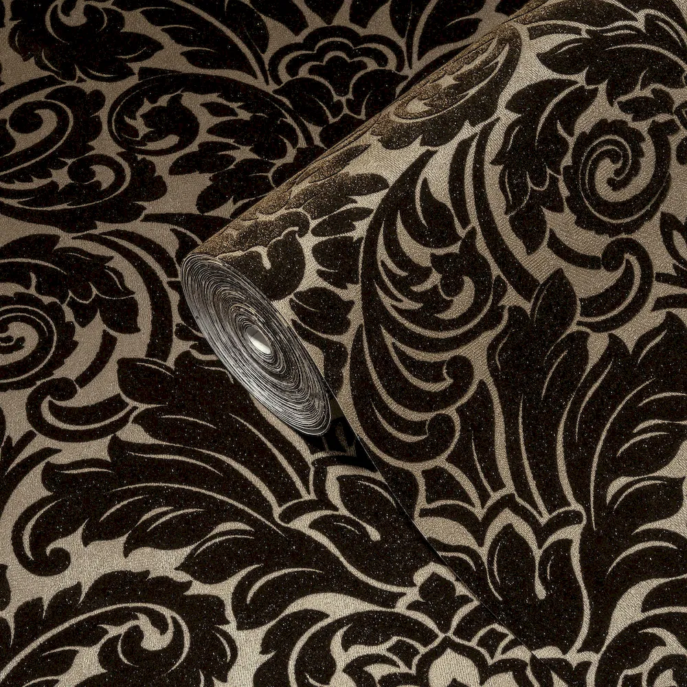 Tapeta 33583-4 AP Castello AS Creation barokowa tekstylna z efektem złota - czarna