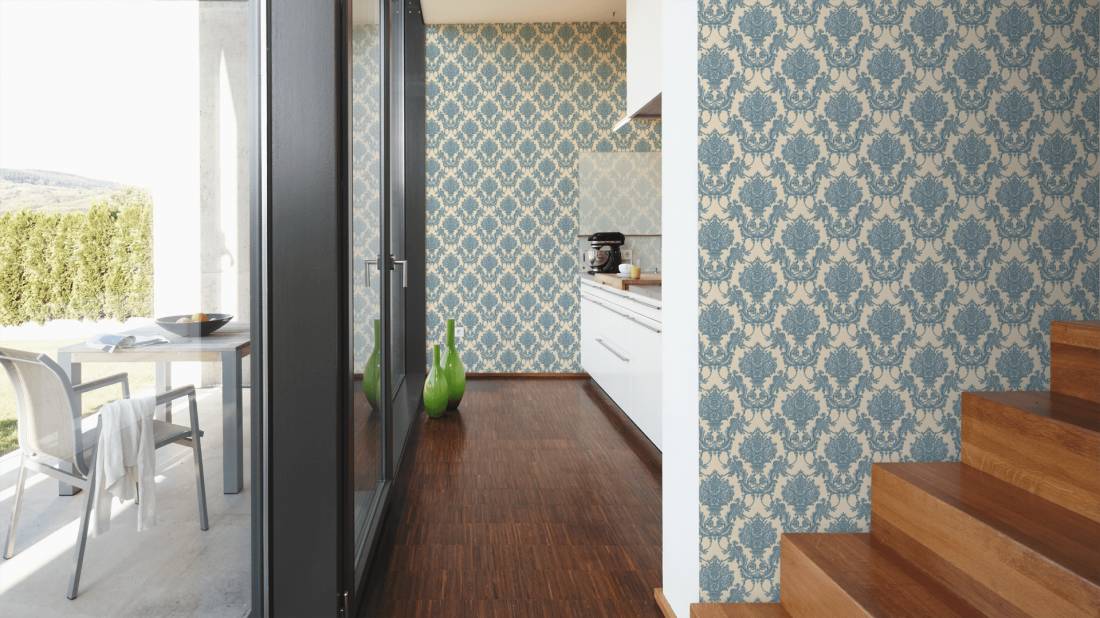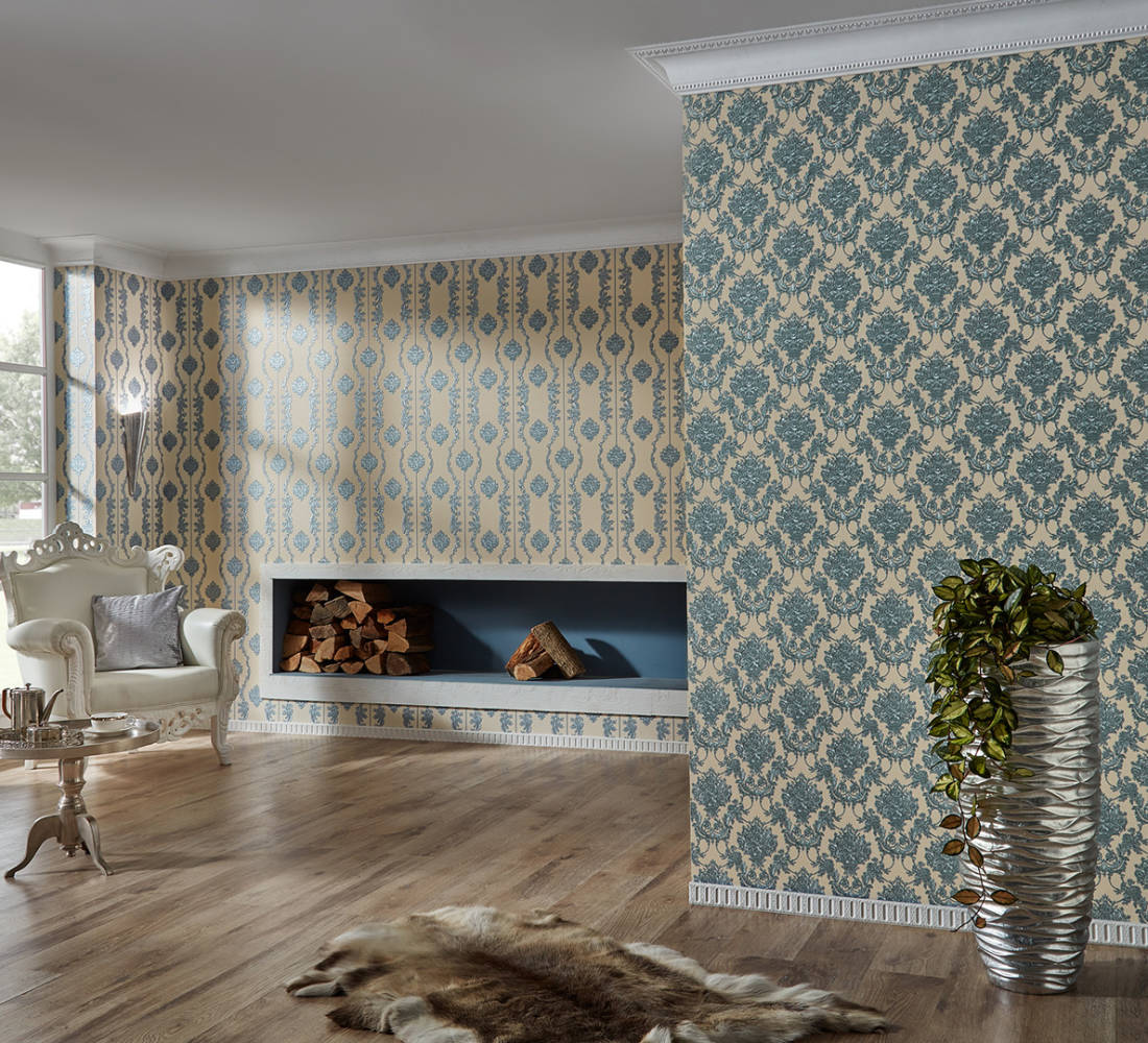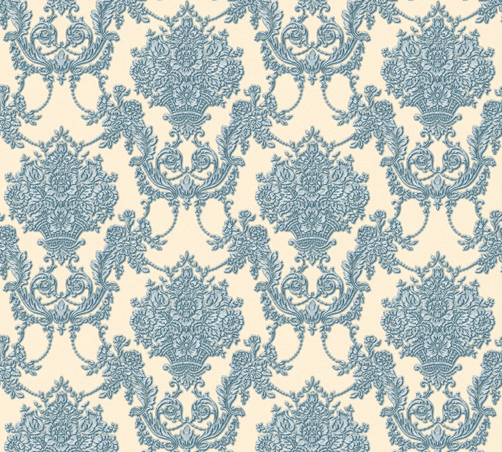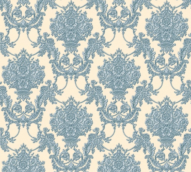Tapeta 34492-6 Chateau 5 AS Creation ornament kwiatowy z metalicznymi akcentami - beż, błękit Outlet ostatnie 3 rolki
