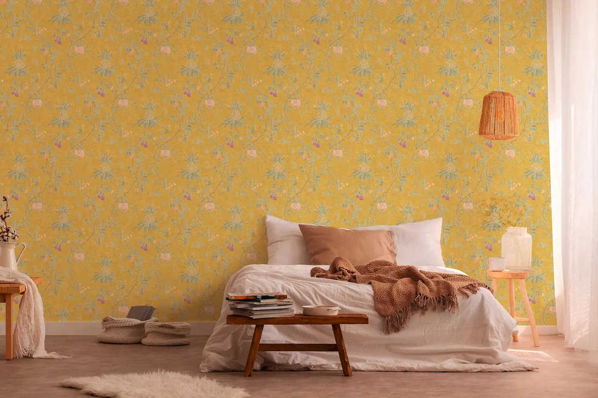 Kolor żółty, dominujący w tej tapecie, wprowadza do pomieszczenia radość i energię. To doskonały wybór dla osób, które pragną ożywić swoje wnętrza i dodać im świeżości. Tapeta 36719-4 Paradise Garden to nie tylko dekoracja, ale także sposób na wyrażenie swojego stylu i osobowości.