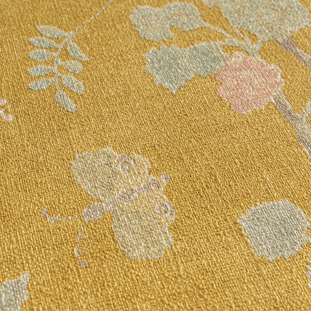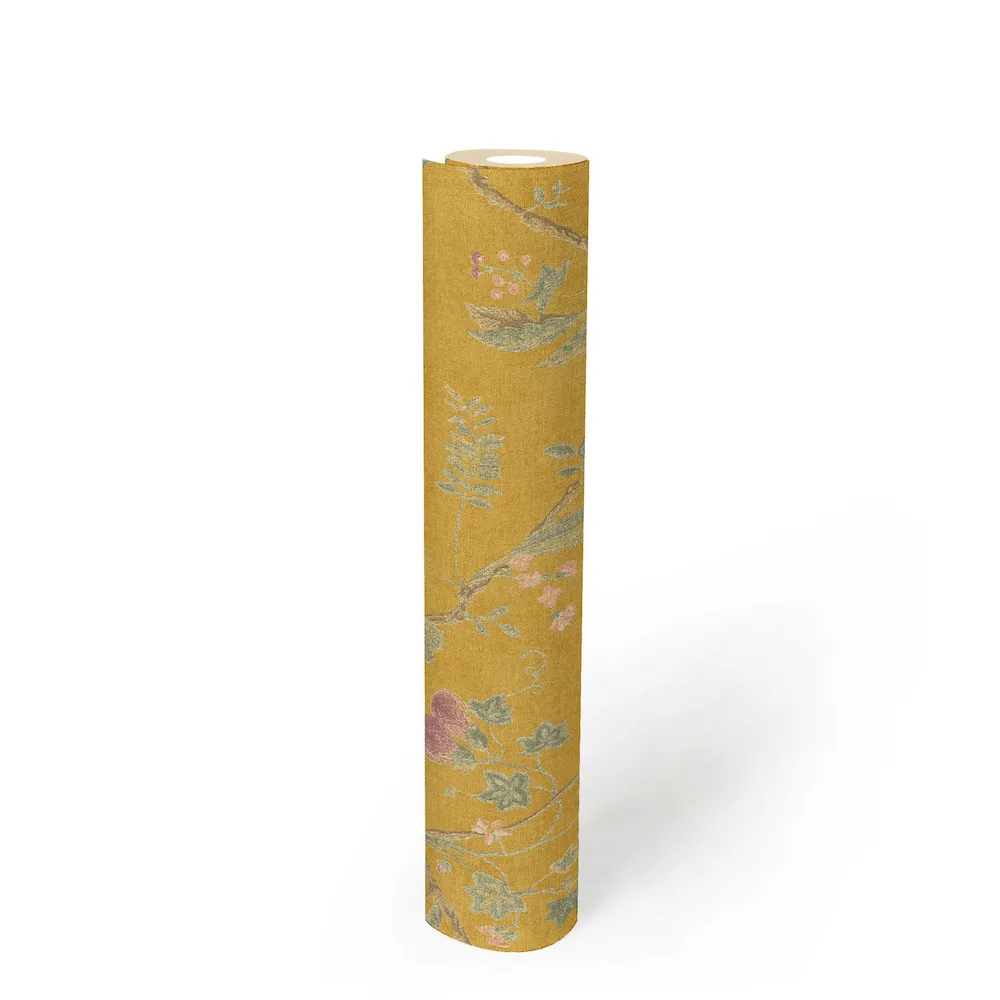 Tapeta 36719-4 Paradise Garden AS Creation kwiatowy wzór vintage i efekt lnu - żółta
