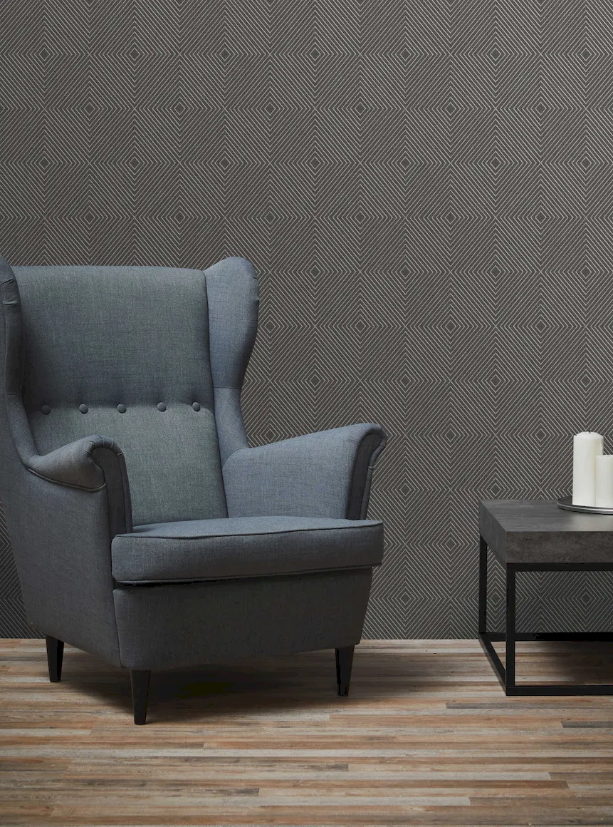 Tapeta 36926-1 Metroplitan Stories AS Creation czarny wzór geometryczny z połyskiem w stylu skandynawskim – szarość, srebrny