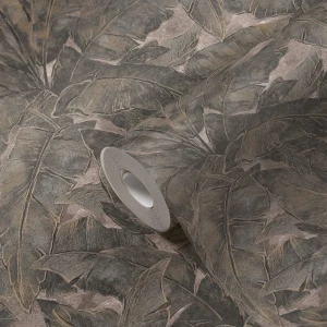 Tapeta 36927-1 Metroplitan Stories AS Creation motyw liść dżungli w stylu vintage ze złotym konturem - srebrny, beżowy, czarny